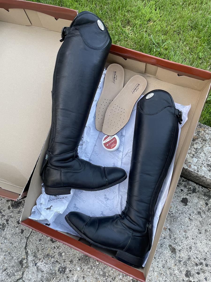 Vendues avec la boîte, les semelles sont neuves n’ont jamais été portées et le produit d’entretien.