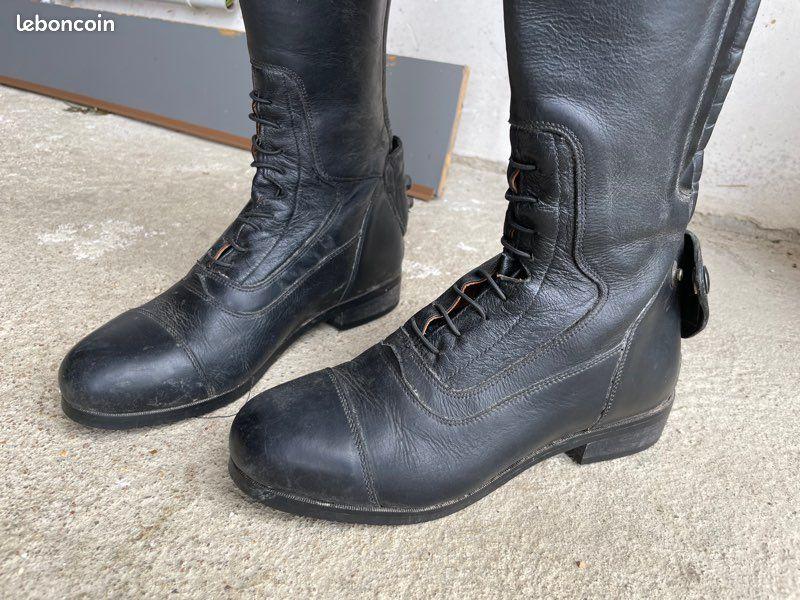 • Bottes en cuir équitation Taille 37 mollet S/M on était un peu agrandi par un professionnel Petite trace sur l’intérieur d’une des bottes (voir photo) Les bottes on était porté 3/4x max acheter ~150€ chez Padd Le prix peut être négociable dans la limite du raisonnable. A VENDRE 80€