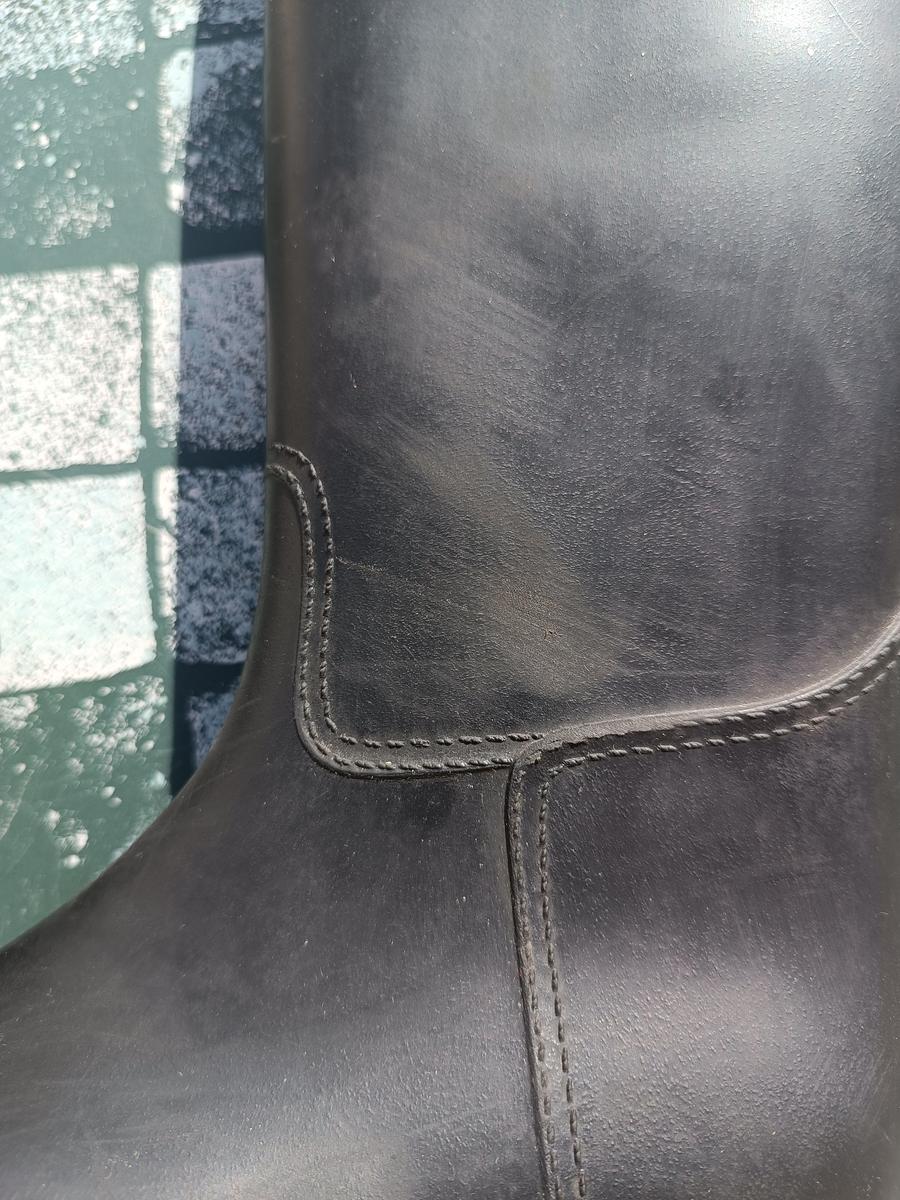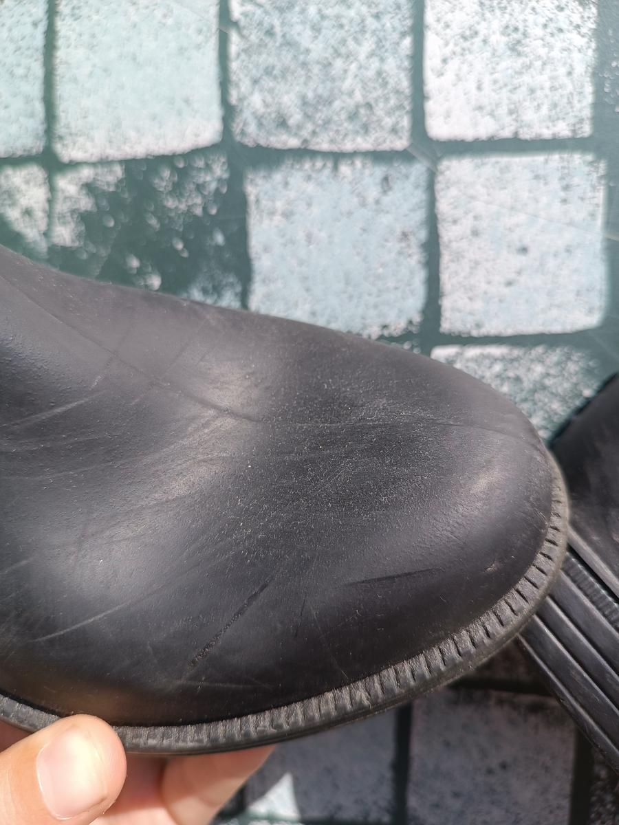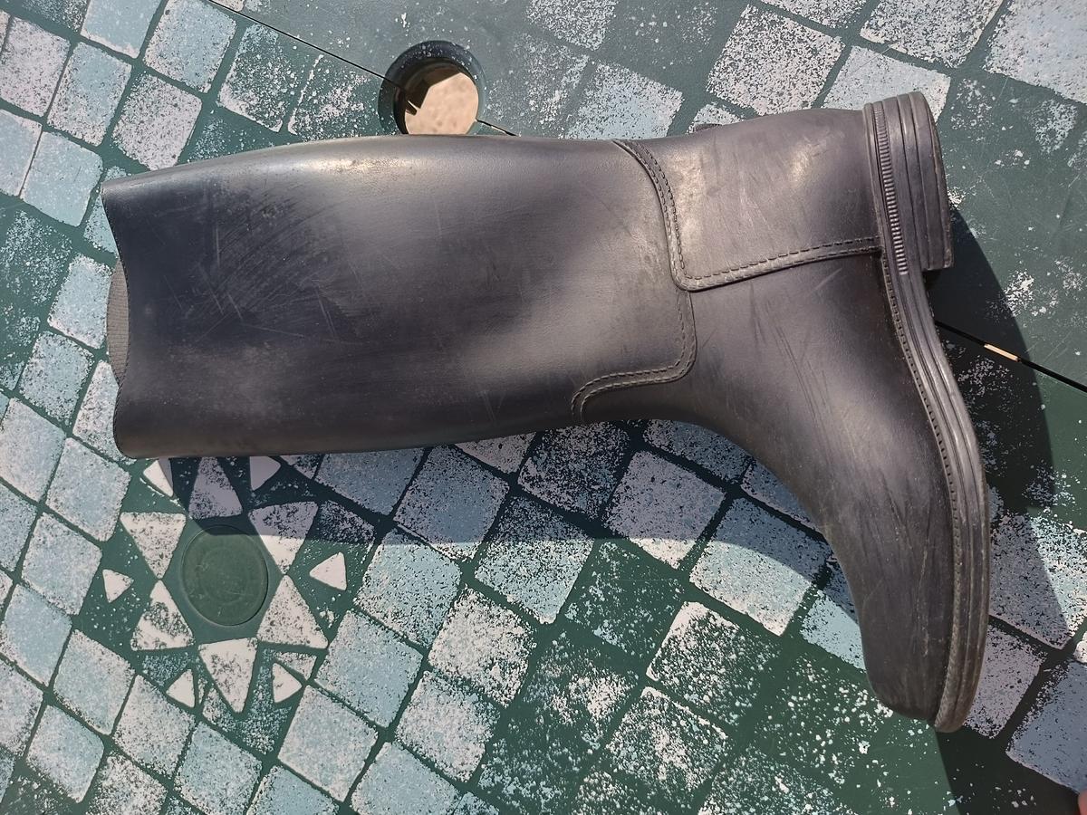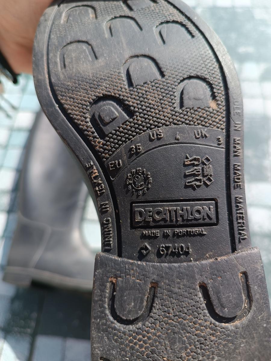 Bottes Decathlon noires. Souvent portées. Traces de frottements visibles.