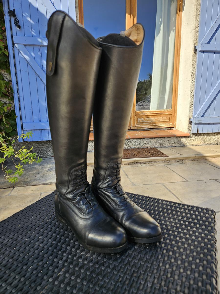 Bottes de dressage Donatello Renaissance by tredstep. T39 SR tige 44 .laçage cheville pour plus de mobilité .trés bonne .embochoirs velours