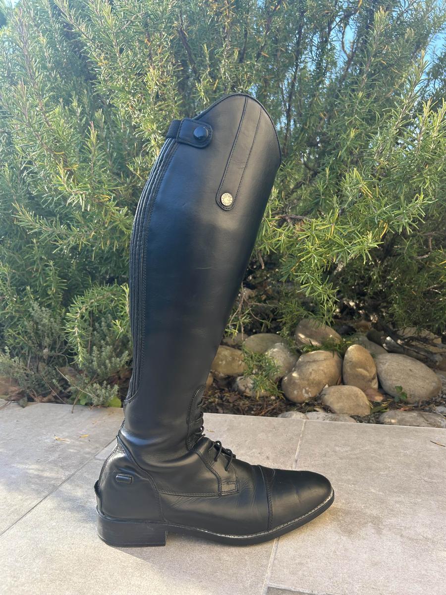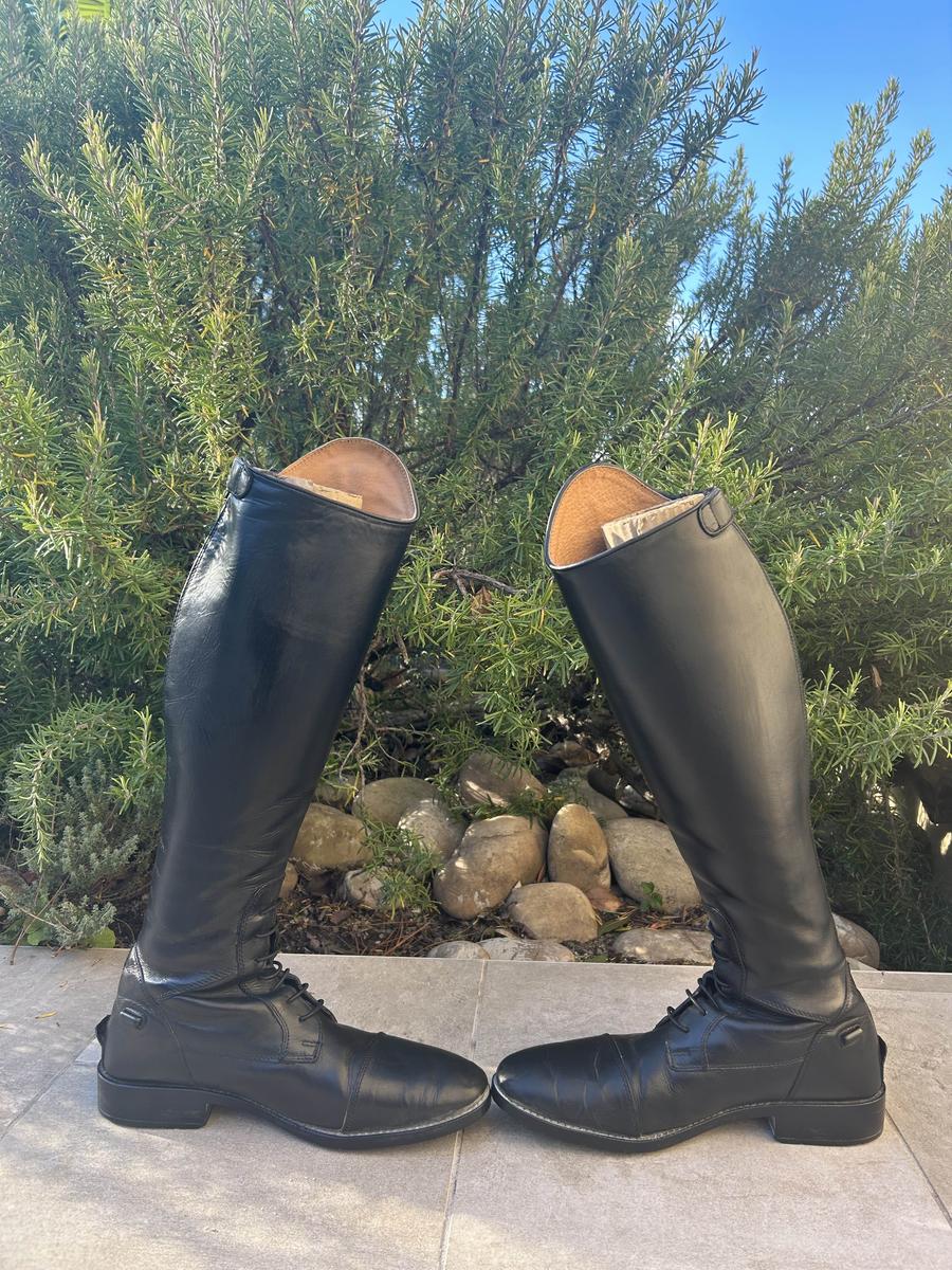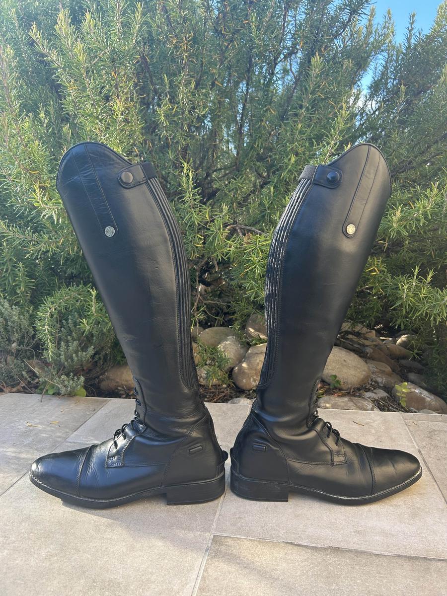 Bonjour, je vend mes bottes d’équitation en cuir qui ne me vont plus. Elles ont été très bien entretenu (graissée toute les deux semaines), le cuir est encore en très bonne état (vu le cordonnier cette semaine pour le cuir et les fermetures). Elles sont négociable dans la limite du raisonable !! Taille 39