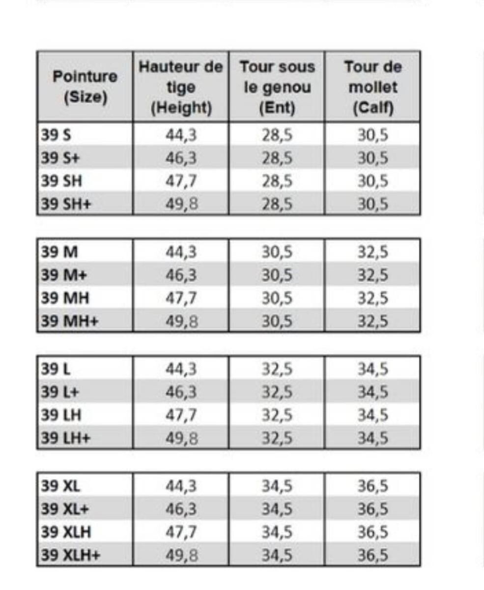 Tailles bottes Parlanti : L