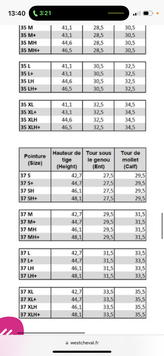 Bottes Parlanti à vendre - Taille 37 mais peut convenir à un petit 38 Mollet L : guide des tailles en photo Portée qu’une saison en concours - en très bon état