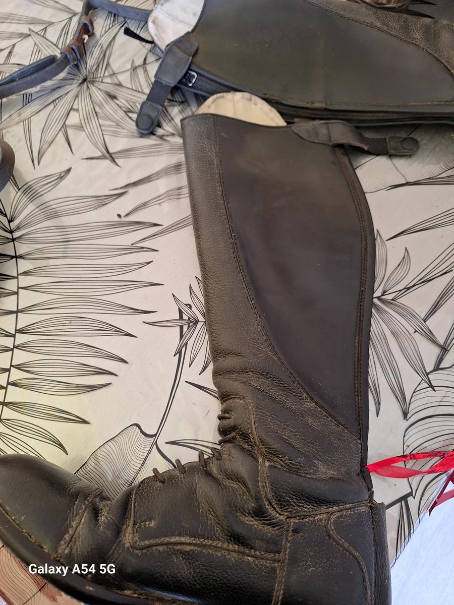 Botte noire use fermeture sur le côté sur 1 botte cuir impecable semelle neuve servi 4 mois