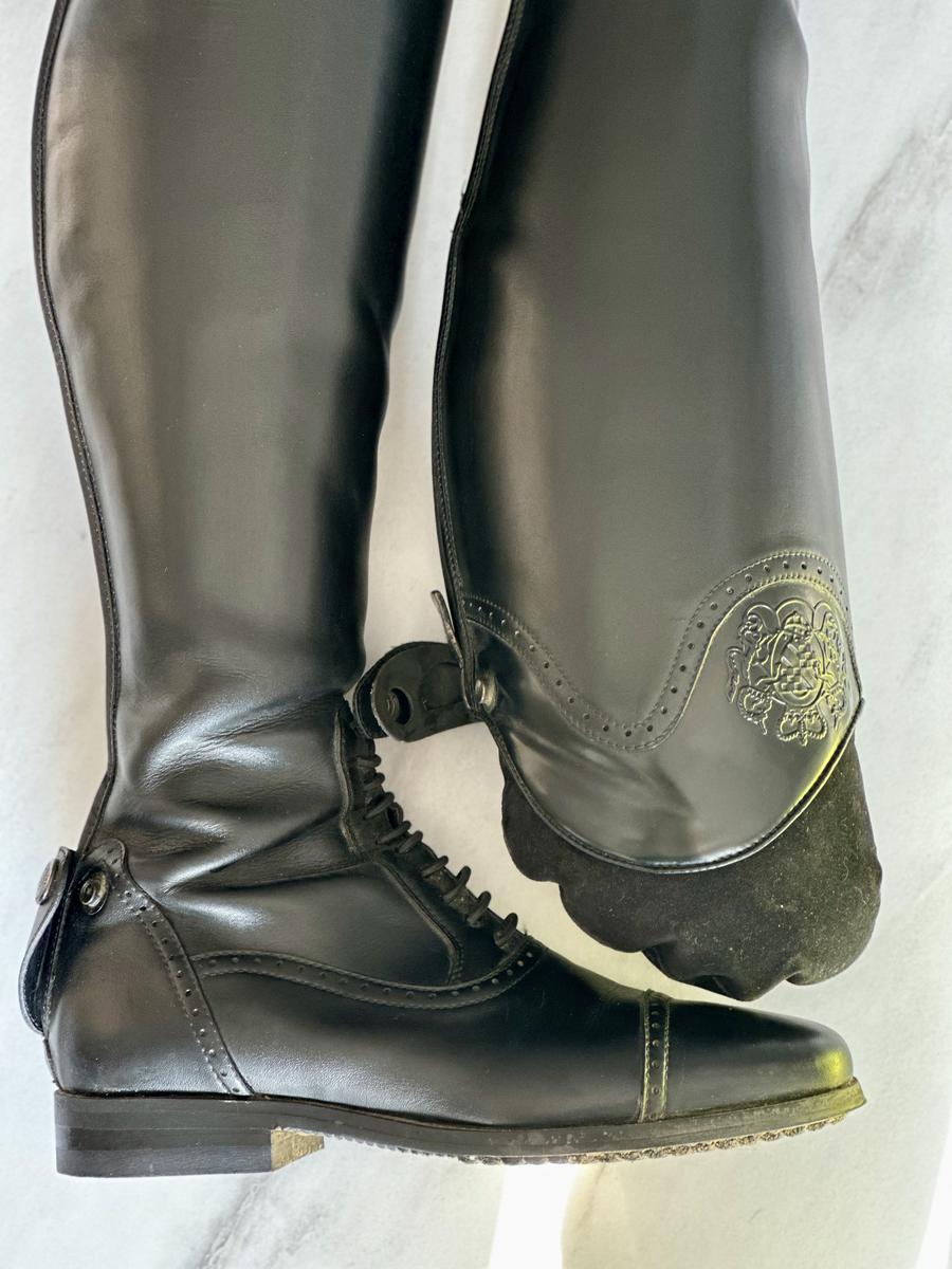 Combinant du cuir de veau haut de gamme et un textile élastique antidérapant, ces bottes sont une promesse de confort absolu pour le cavalier. Très innovant, ce tissu technique face interne permet à la jambe du cavalier d'adhérer au cuir de la selle, tout en respectant parfaitement celui-ci grâce à sa texture très douce.