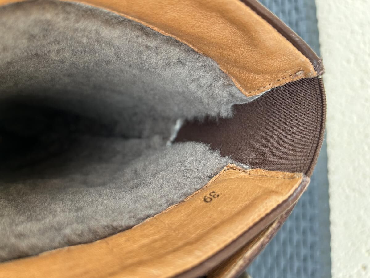 Elle est doublée en fourrure mouton, la peau de mouton est naturellement thermostatique, gardant ainsi les pieds à leur température corporelle naturelle, quelle que soit la température extérieure.