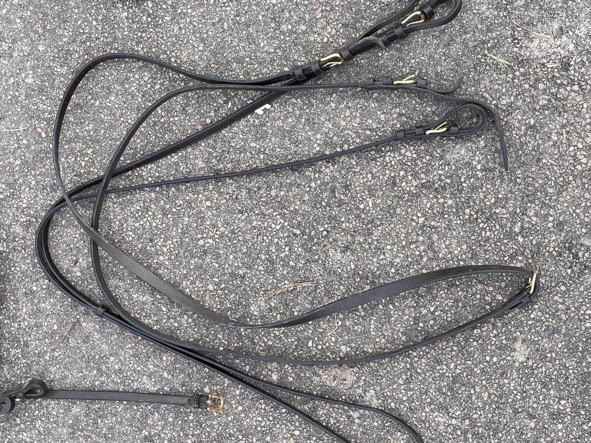 neuve, super qualité de cuir, molletonné avec deux paires de rênes