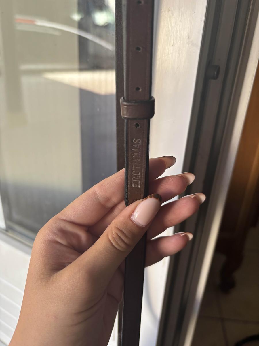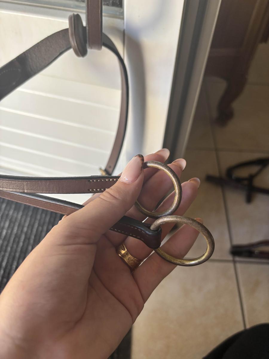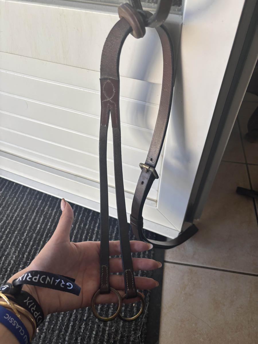 en cuir marron , porté quelques fois mais zéro défaut, les anneaux ont légèrement rouillés, taille poney, sera nettoyé avant envoie.