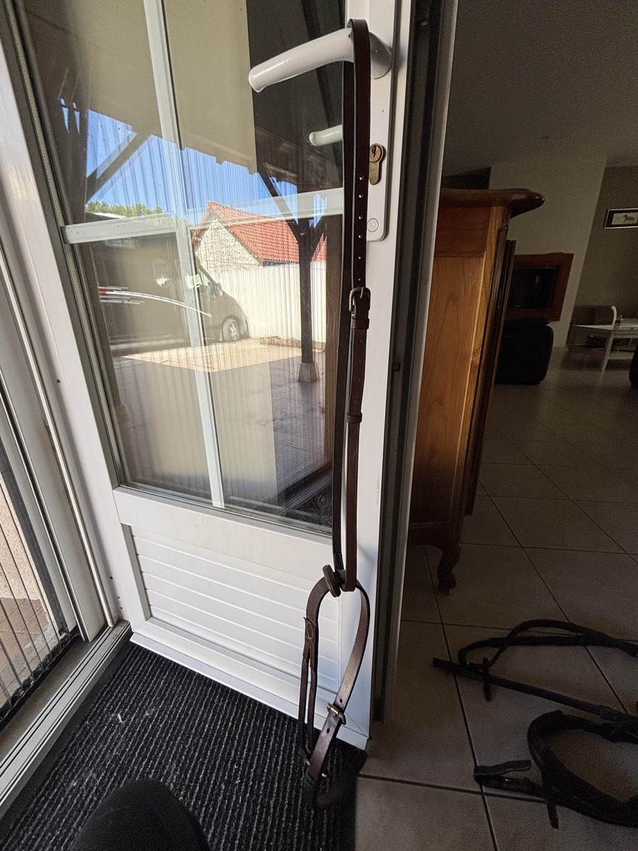 en cuir marron , porté quelques fois mais zéro défaut, les anneaux ont légèrement rouillés, taille poney, sera nettoyé avant envoie.