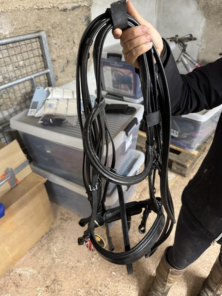 Bride noir, neuve jamais utilisé, taille cheval, vendu avec les rennes