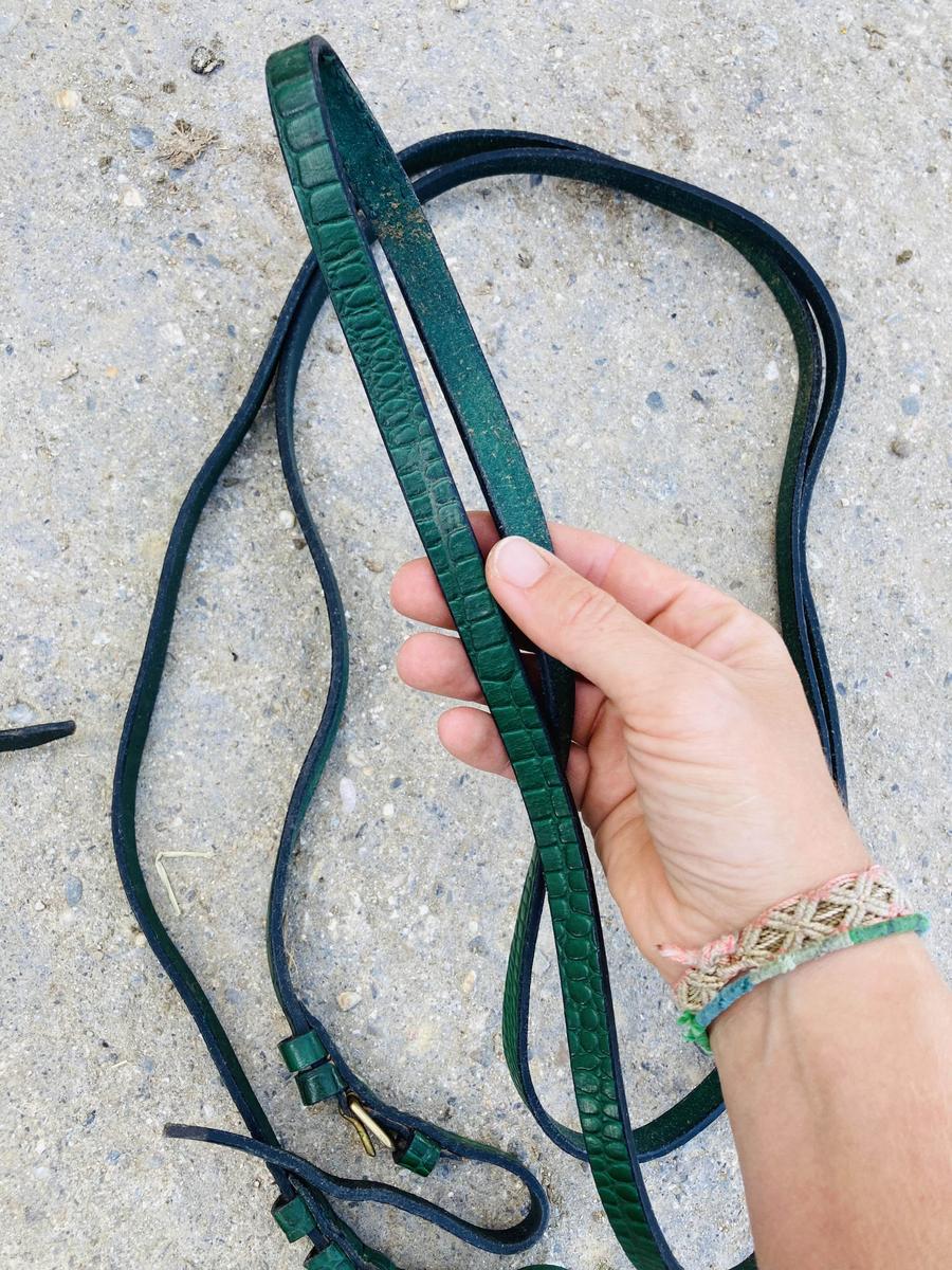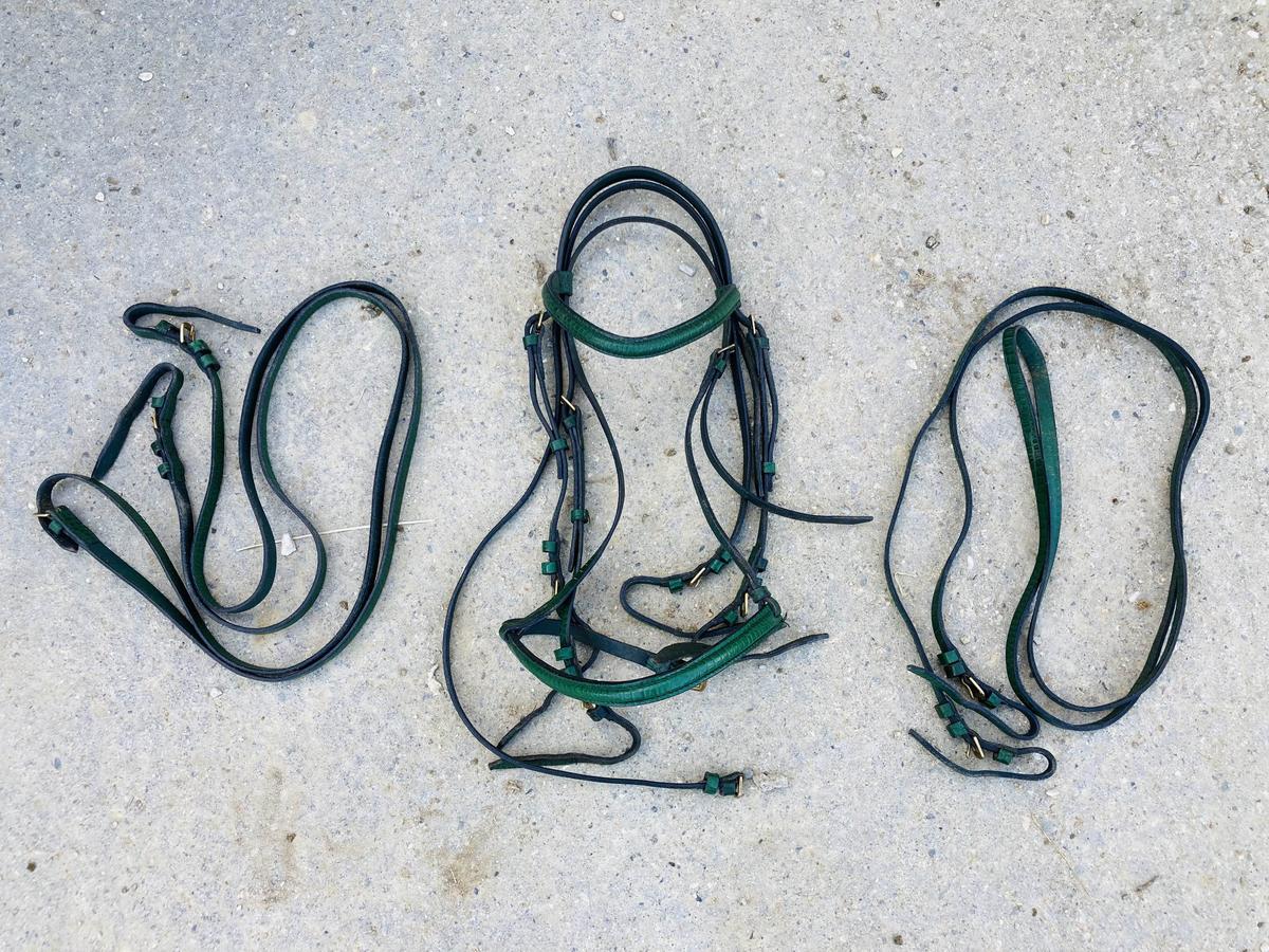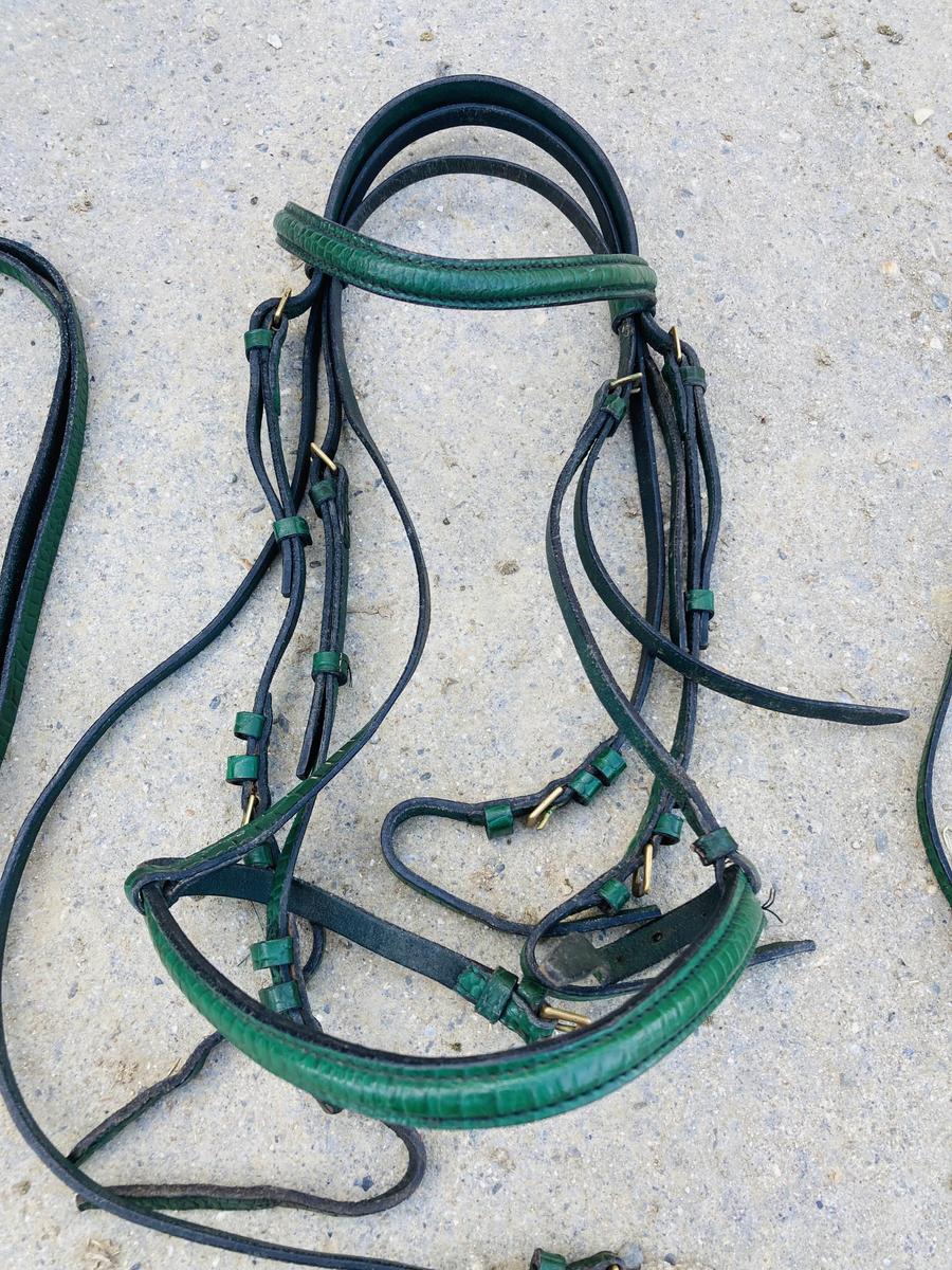 Je vends ce magnifique ensemble bride + rênes de filet + rênes de bride.