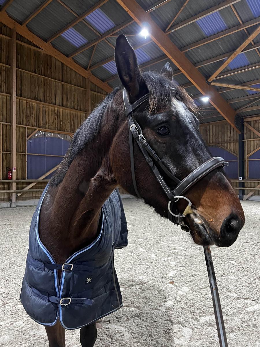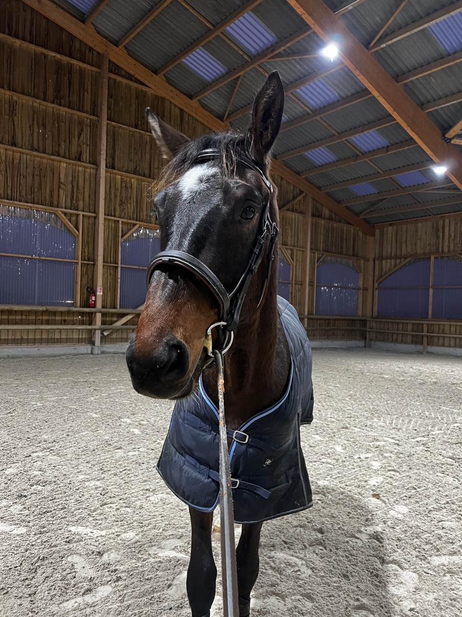 filet dyon excellent état, très peu mis sur mon jeune de 2 ans pour les sorties après sa convalescence ! il est marron foncé, j’ai également la lanière pour la muserolle combinée. la têtière est anatomique. vente cause je cherche un filet avec un frontal à paillettes !