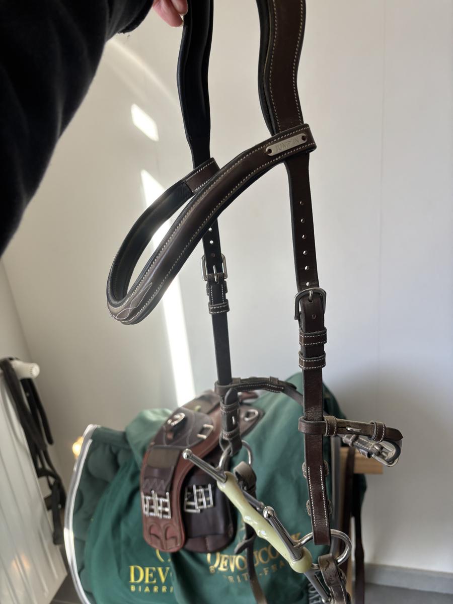 Vendu avec les rênes qui sont de très bonne qualité et très souple.
