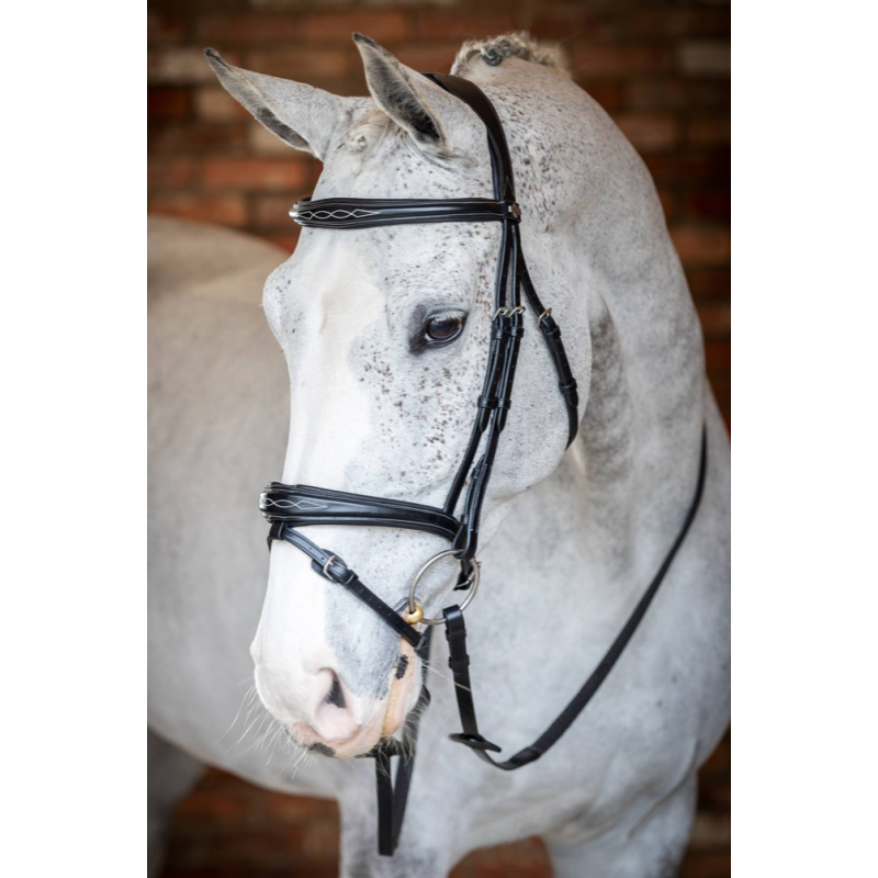 Le bridon de compétition LeMieux est de qualité supérieure avec un frontal élégant et rembourré et une muserolle comportant des coutures décoratives.