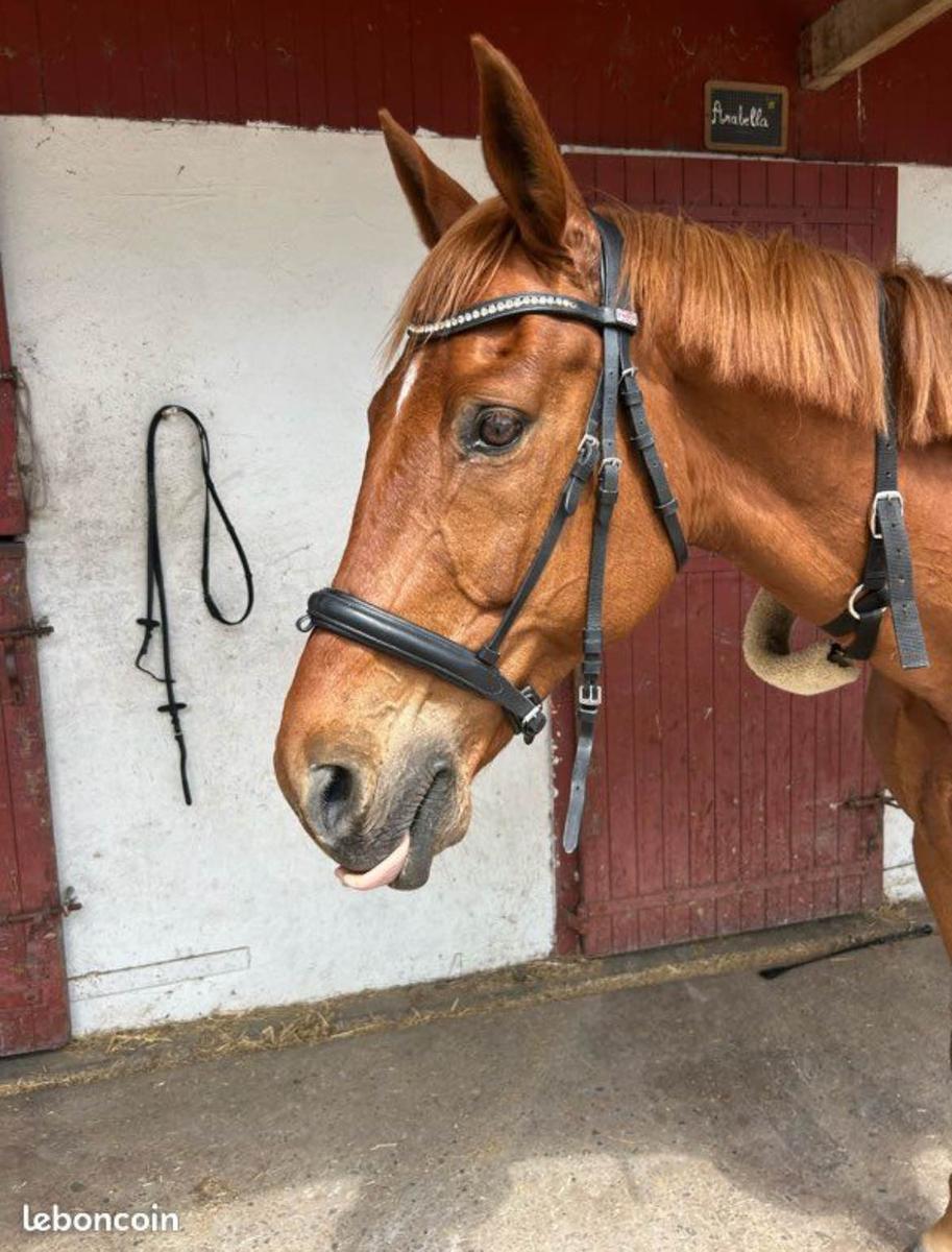 Bridon / filet noir, Taille FULL CHEVAL vendu avec le frontal sur la première photo, en tres bon état ! Pas beaucoup porté :) Têtière anatomique Bridon de dressage ou autre Je me souviens plus de la marque 😅