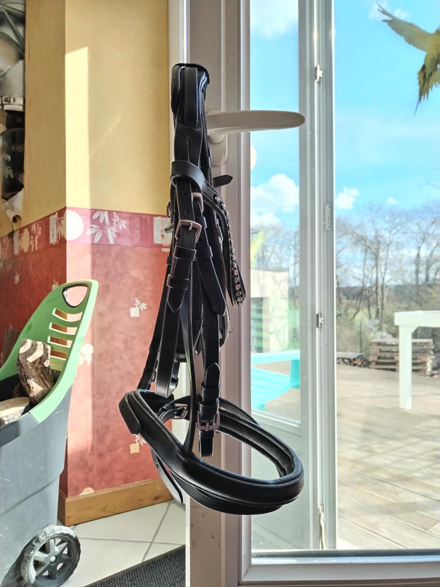 Filet en cuir noir avec têtière anatomique