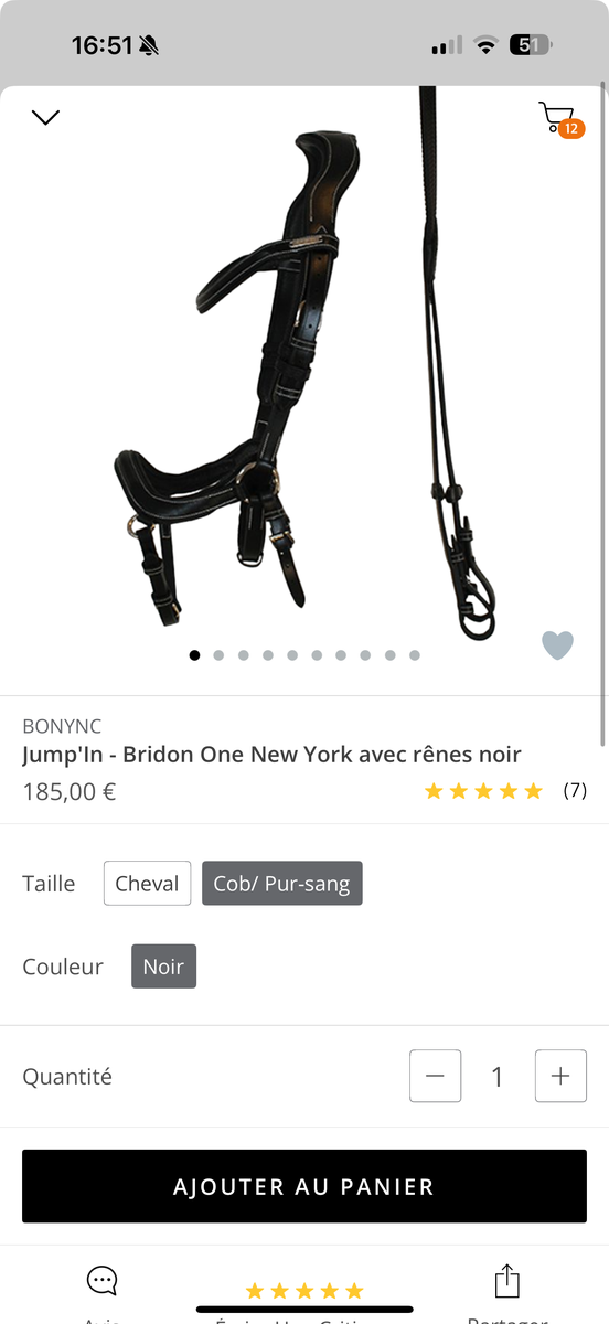 Bridon Jump’In One New York avec ses rênes Noir taille Cob excellent état