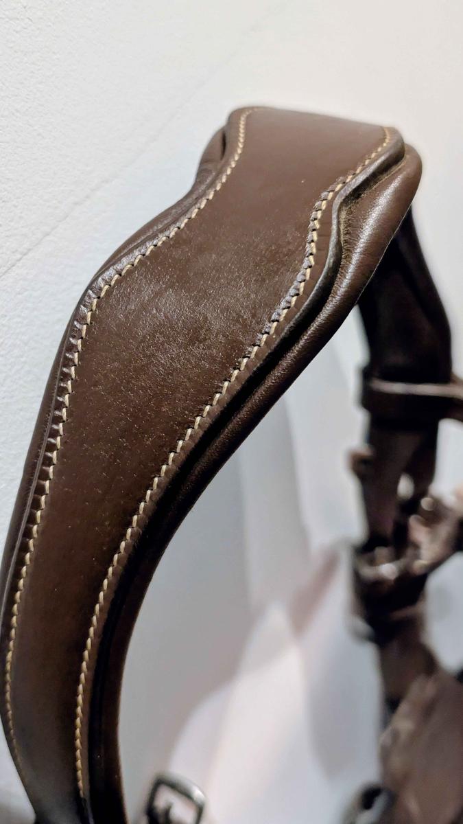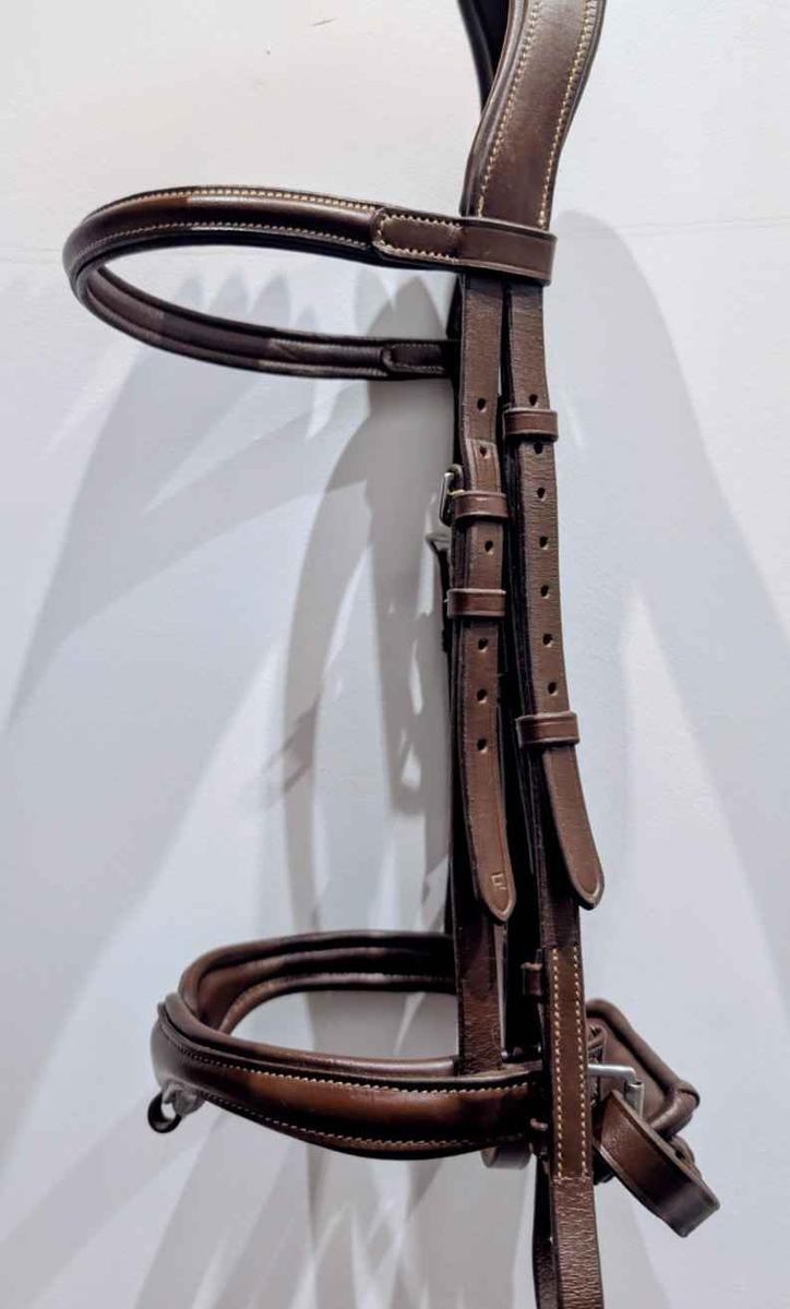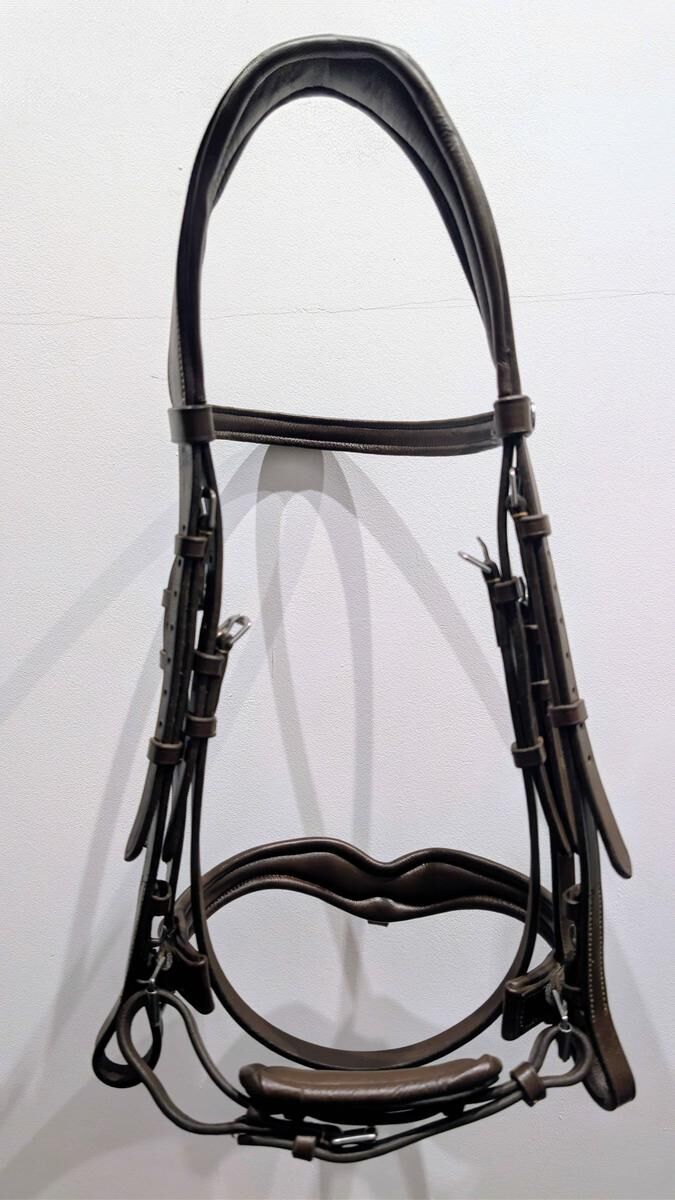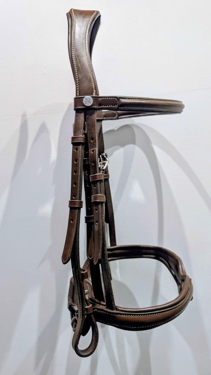 Je vends un filet Bridon Norton pro vague en cuir de buffle avec têtière anatomique. Un frontal et muserolle suédoise doublés cuir vachette. Avec des crochets sur les montants de mors, des coutures blanche et une bouclerie en inox. Très peu utilisé car pas a la bonne taille. Il y a également la muserolle croisée qui peut être ajouté ou retiré qui est disponible avec ( jamais mis). Pour plus de photos contacter moi.