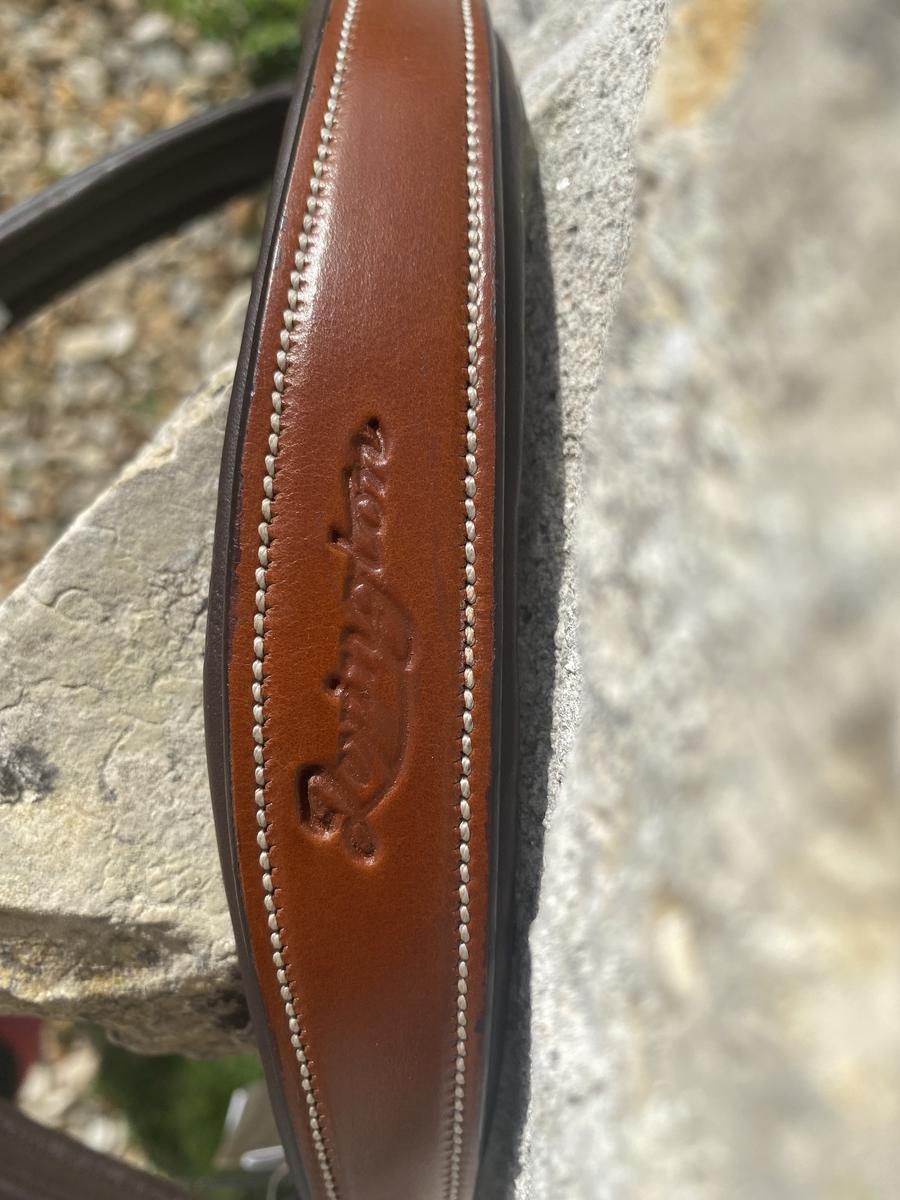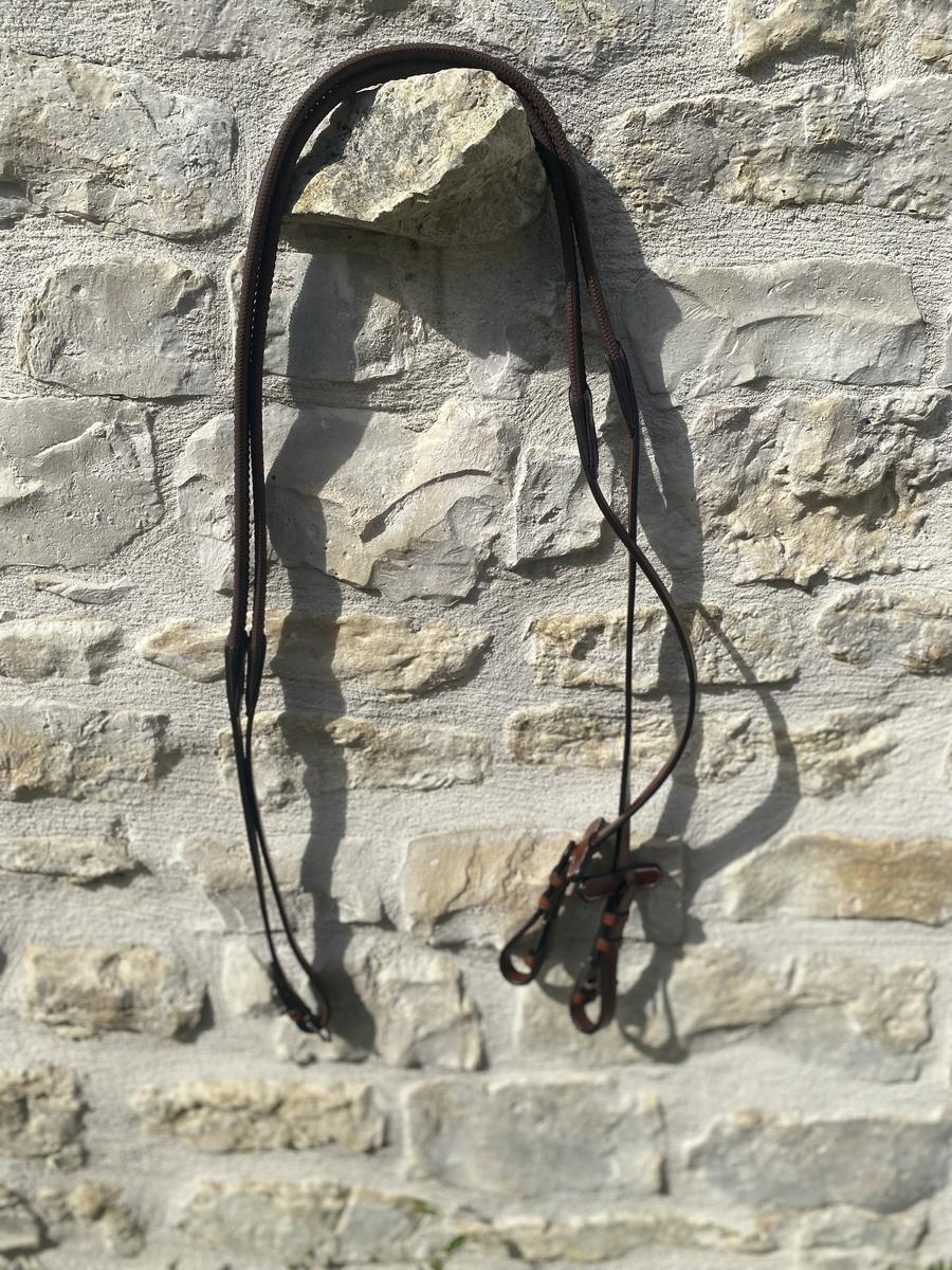 Filet / Bridon muserolle croisée marron avec sa paire de rênes