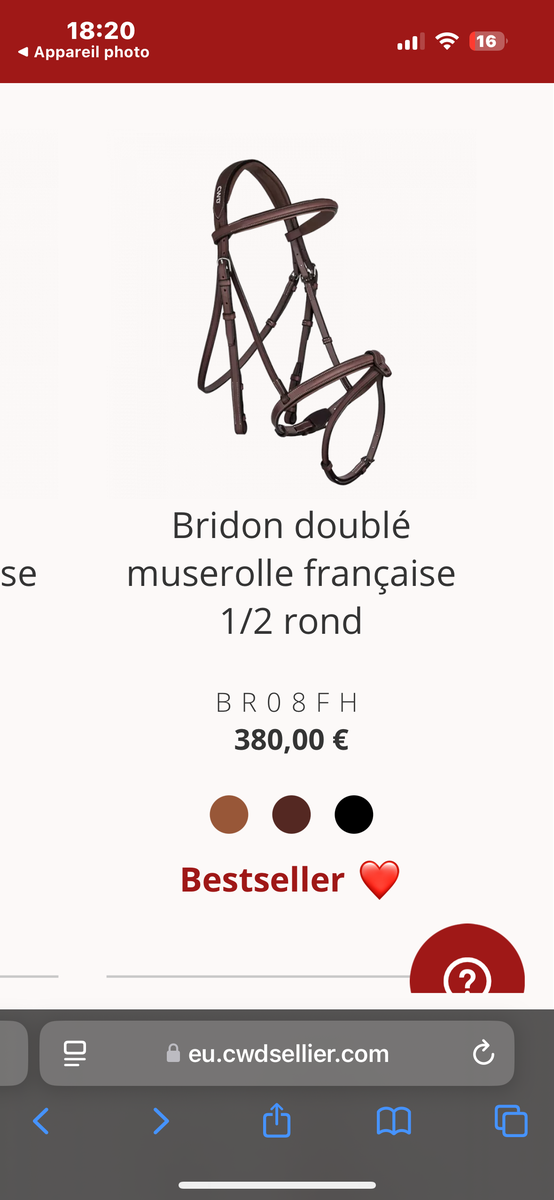 Bridon CWD noir 1/2 rond doublé muserolle Française Taille 01