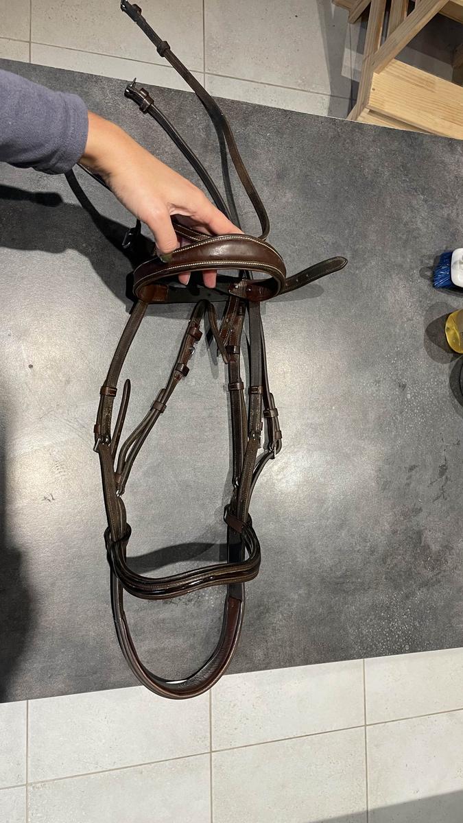 Je vends un filet SilverCrow modèle Style*COUTURE taille cheval marron surpiqûre blanche. Filet utilisé uniquement en concours.
