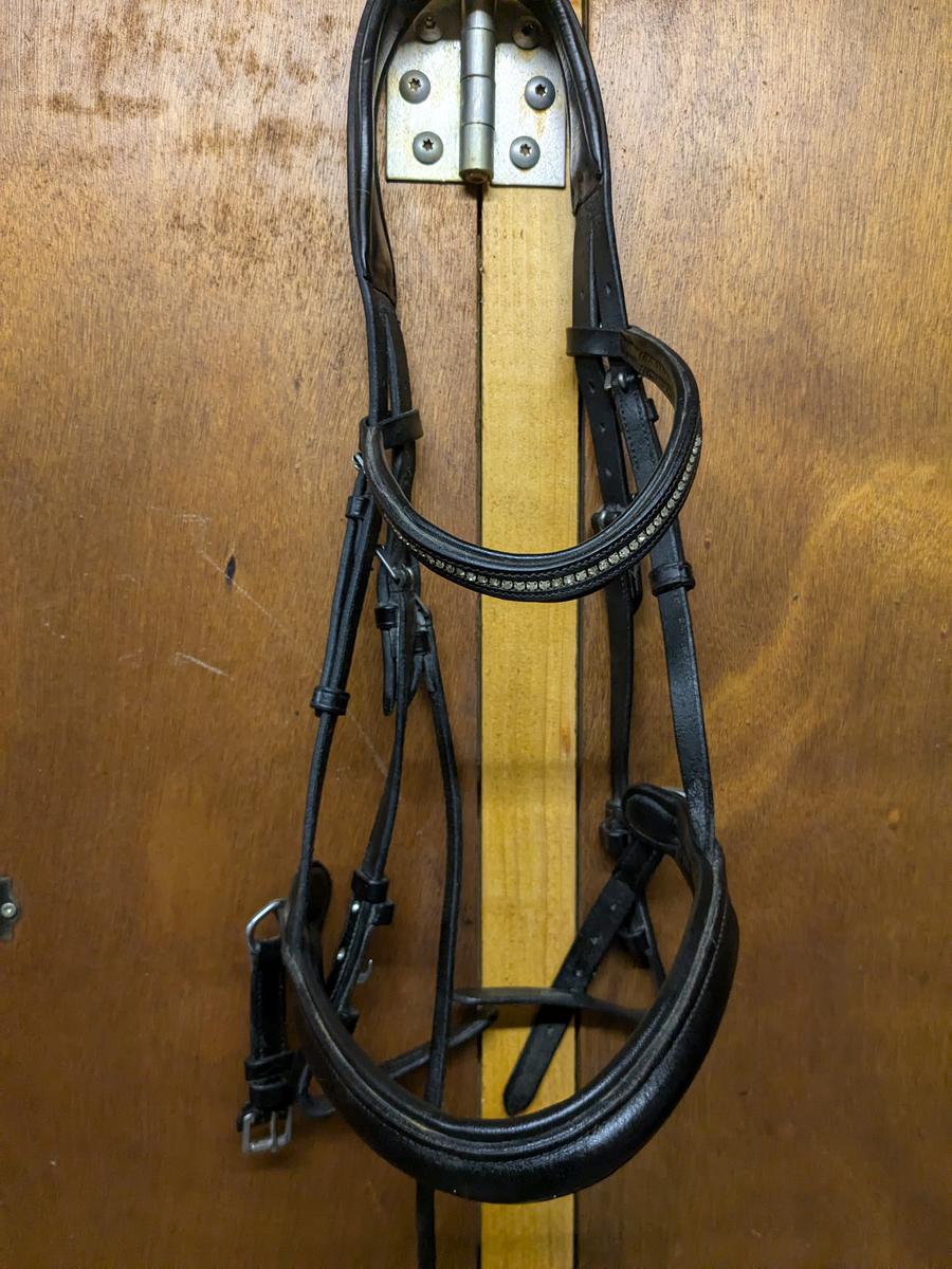 Bridon noir taille CS, cob. Strass sur le frontal, il en manque quelques uns, voir photo