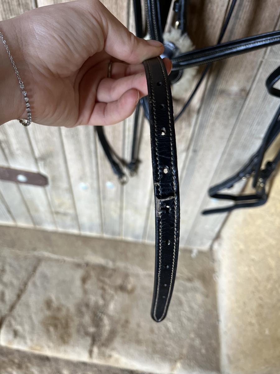 Abîmé au niveau de la double muserolle mais n’empêche pas l’utilisation