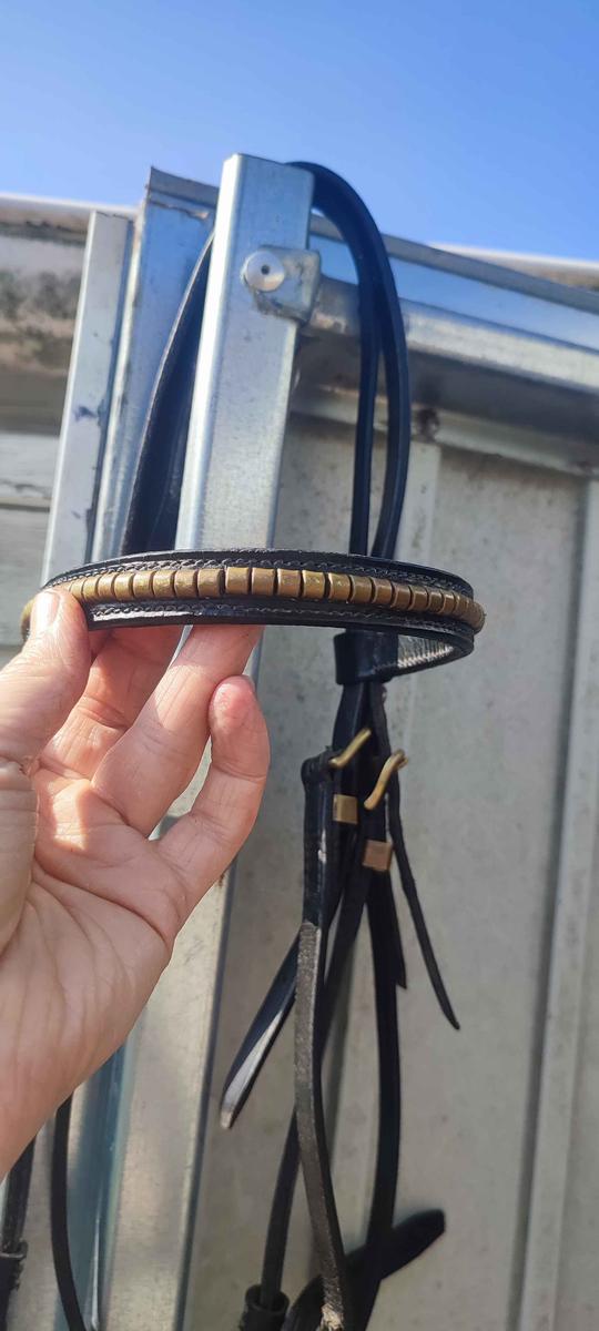 filet noir et doré taille cheval : peu être vendu avec le mors (5€ de plus)