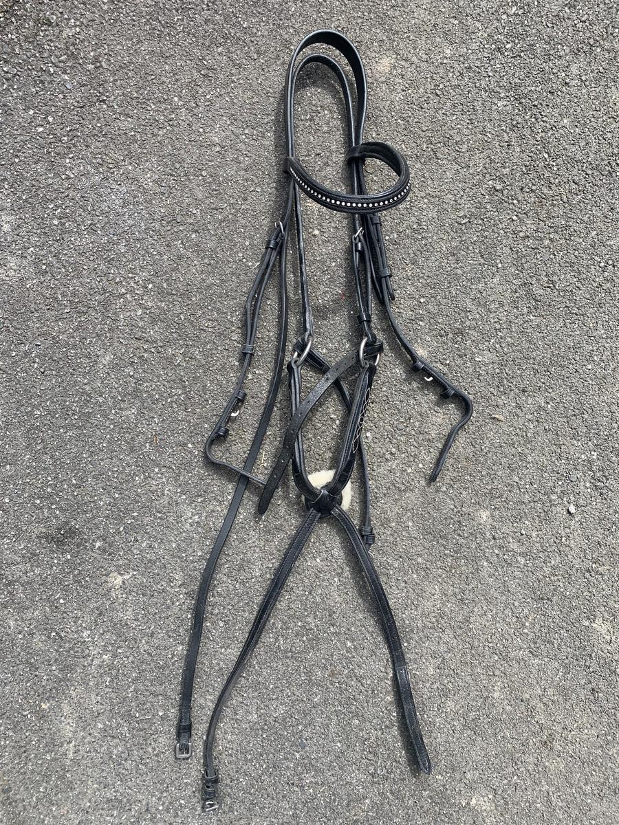 Bridon muserolle croisée noir avec 2 frontaux.