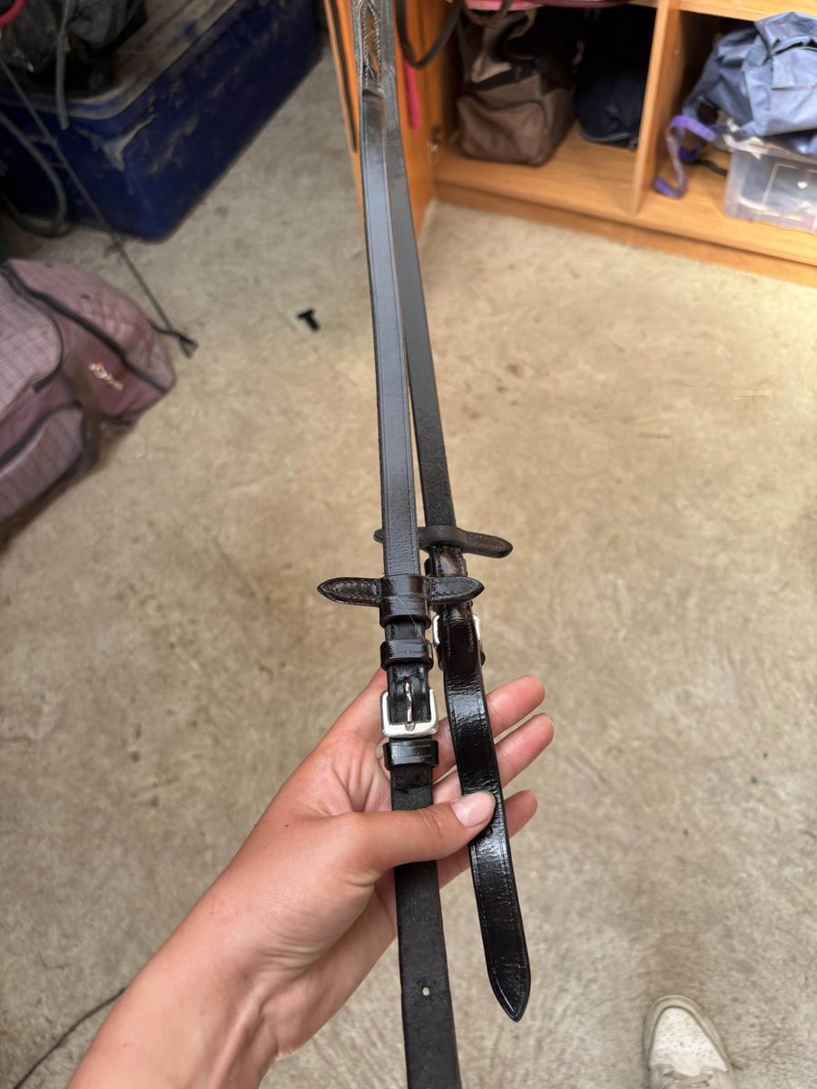 filet rose avec muserole de dressage + rênes vendue avec a servi une saison de concours mais a était bien entretenue donc en assez bonne état a que quelques défauts sur la frontale ou des perle sont partie voir sur les photos