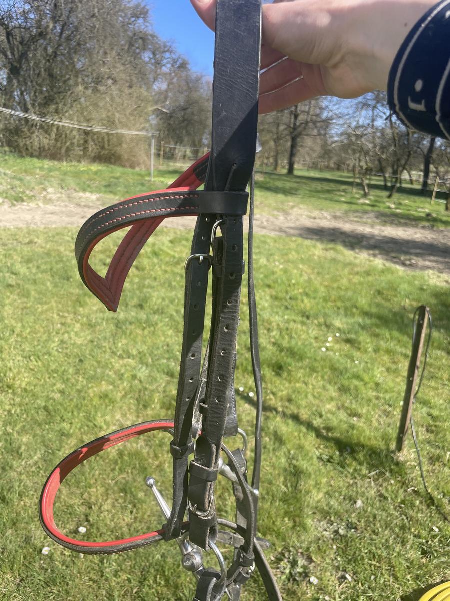 Filet taille cob ou petit cheval (j’ai une jument avec une tête taille cob et je suis au maximum des réglages ; peut convenir à un cheval)