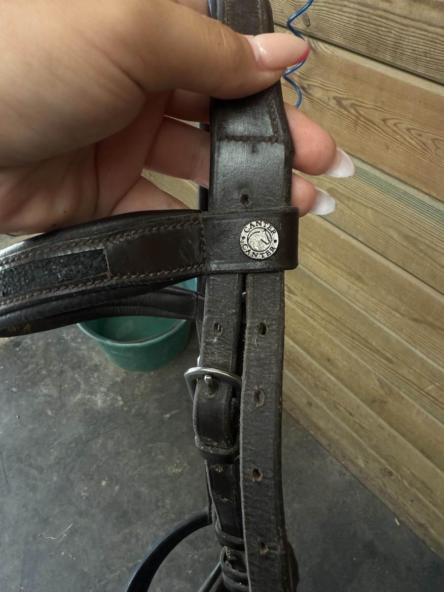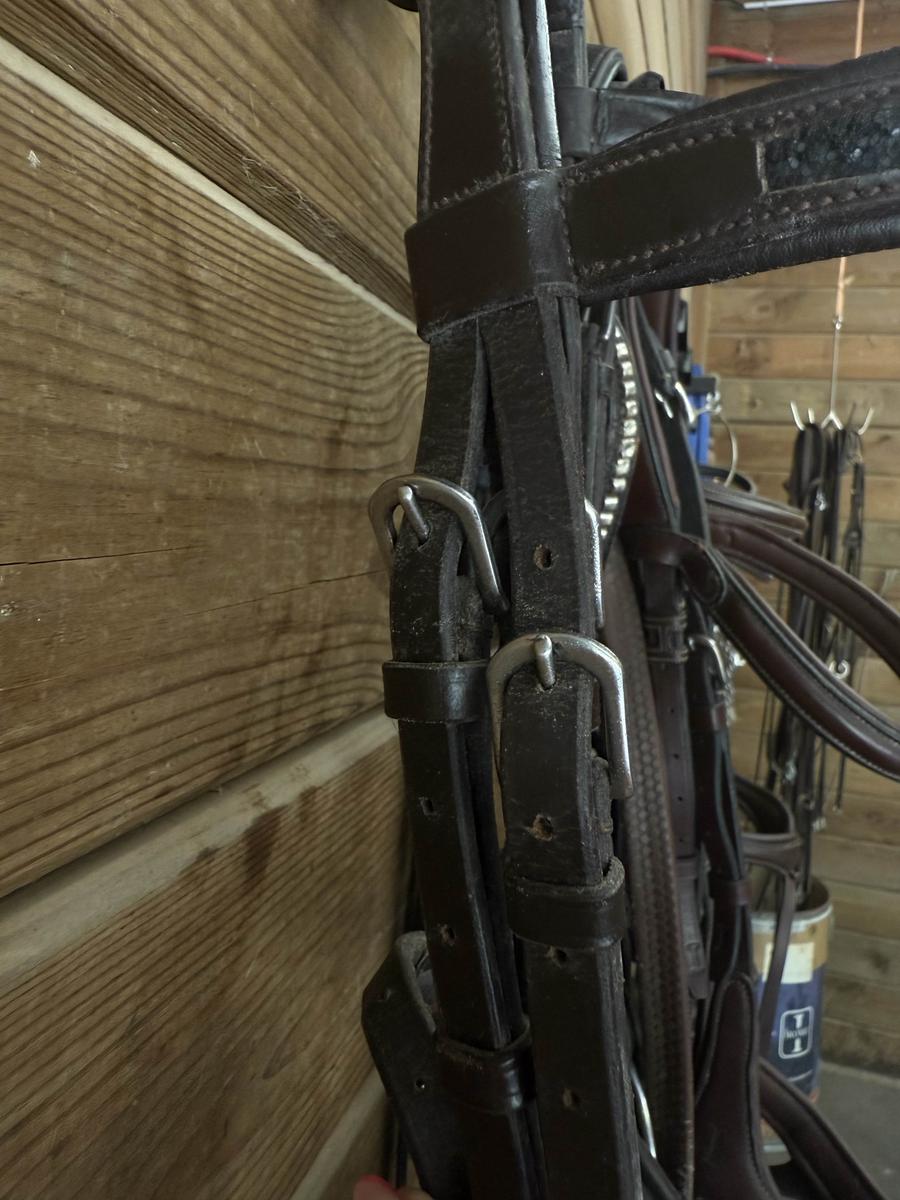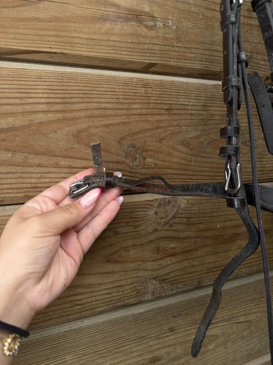 ⚠️ Cuir qui se décolle au niveau de la muserolle et passant cassé (ne gêne en rien son utilisation)