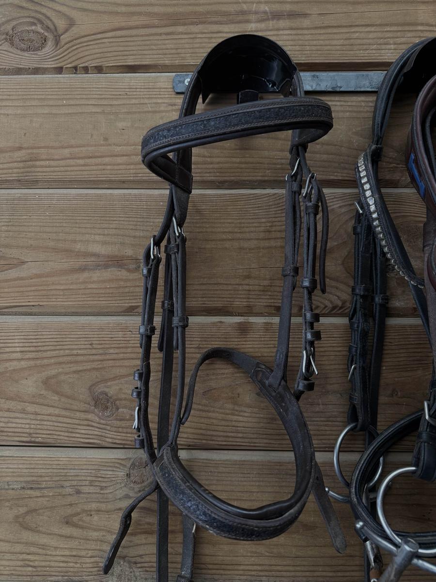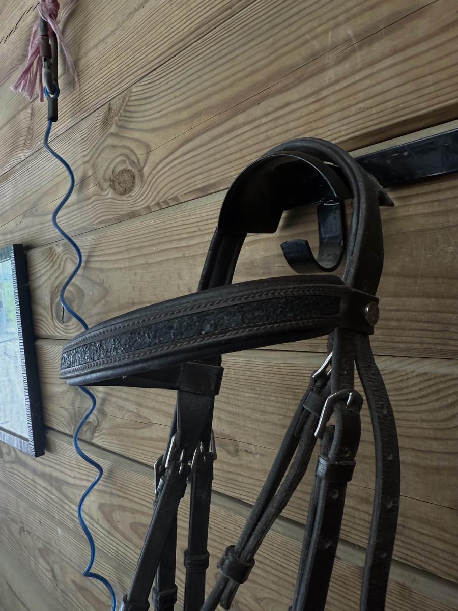 ⚠️ Cuir qui se décolle au niveau de la muserolle et passant cassé (ne gêne en rien son utilisation)