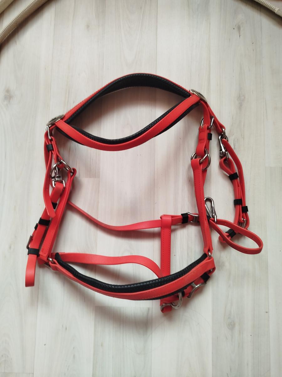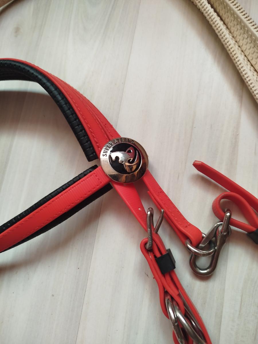 Bridon rouge en PVC idéal pour la pratique de l'endurance. Servi une seule fois. Vendu avec les rênes