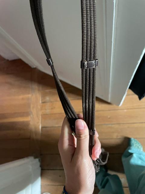 Filet vendu avec des rênes en tissu.
