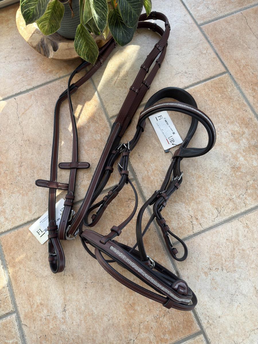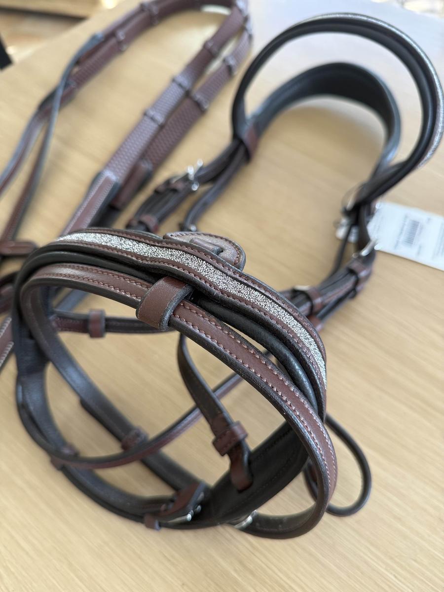 Frontal et muserolle combinée plats, doublés et ornés de brillants.