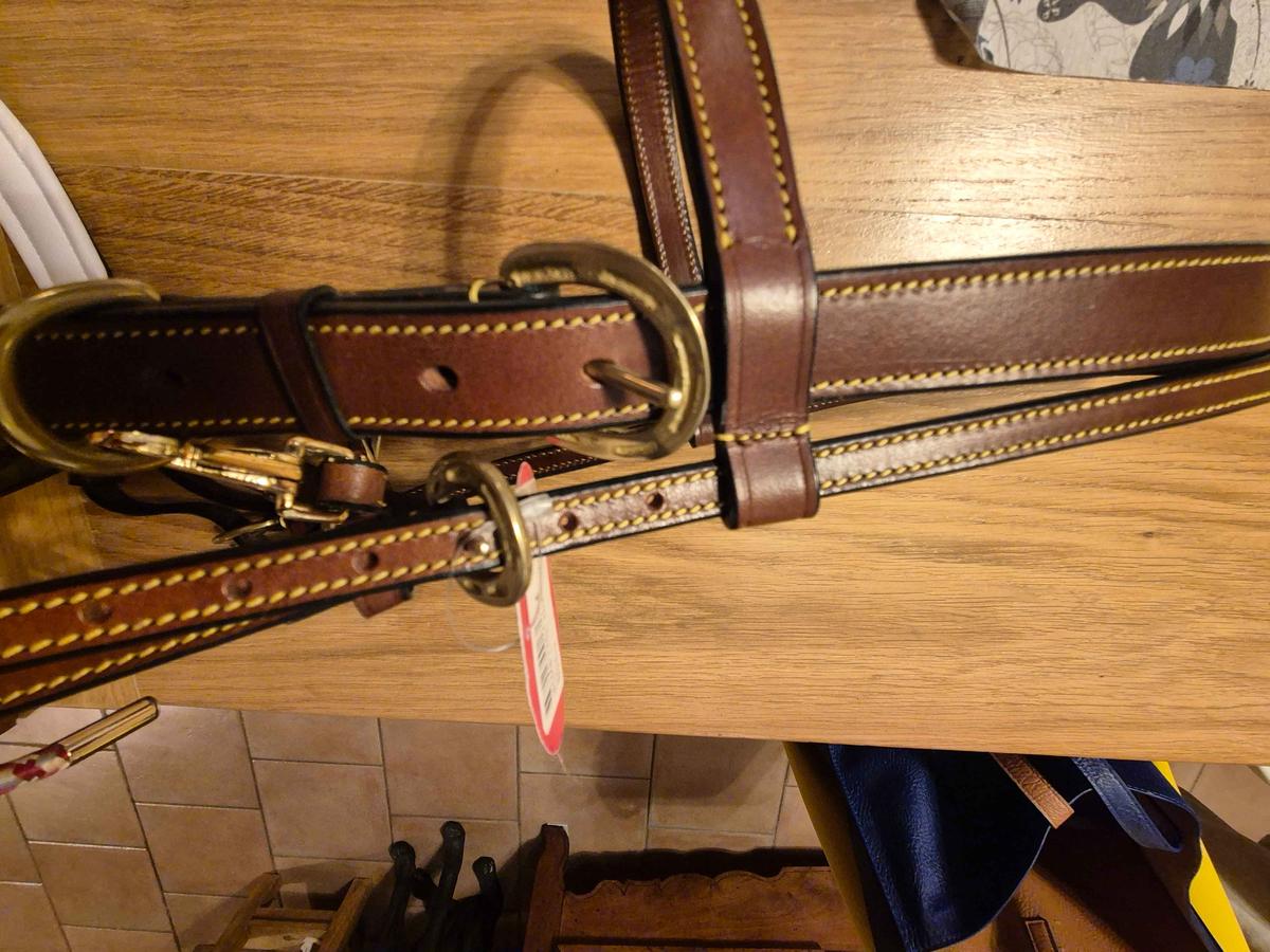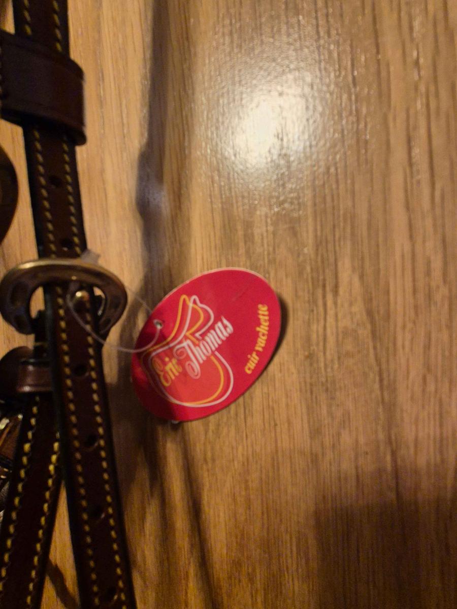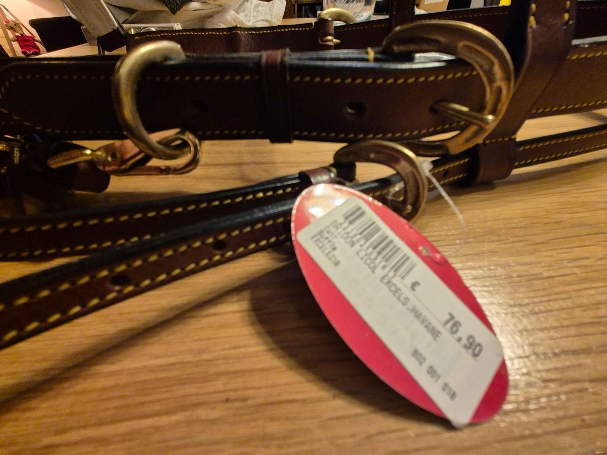 beau filet cuir avec boucle decor cheval bi colore. neuf