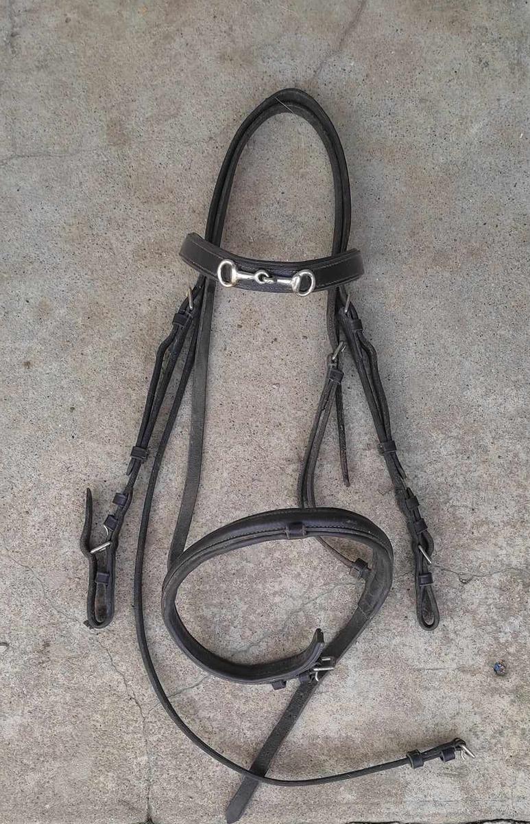 Avec mors sur le frontal et boucleries doré.