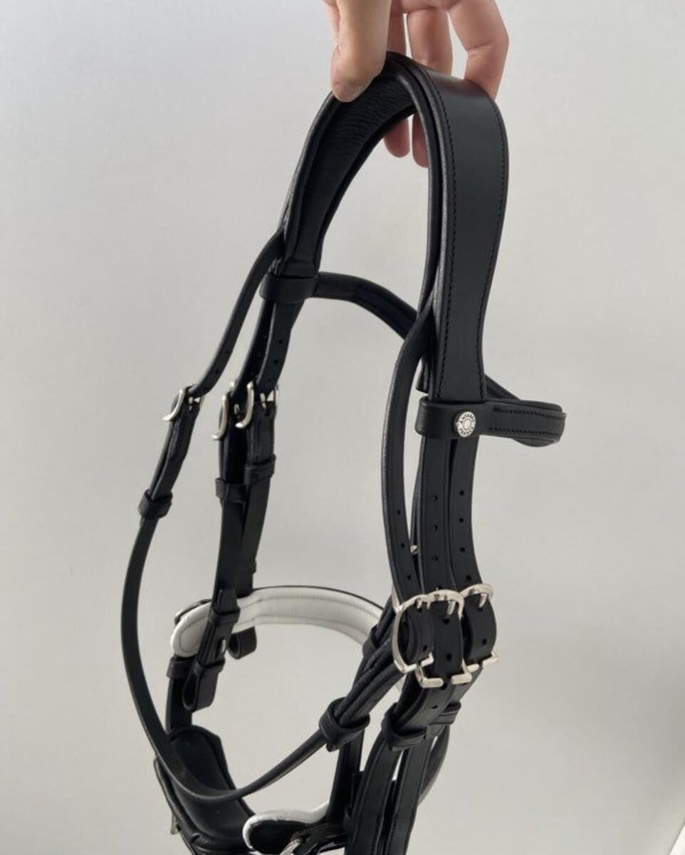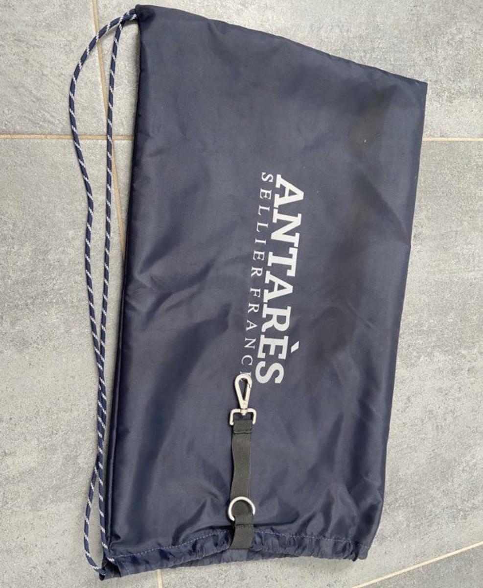 Je vends une bride Antarès dans un état irréprochable comme neuf, elle a servi 2-3 fois, nettoyé à chaque utilisation et huilé une fois, elle est même encore un peu raide du fait qu’elle est neuve comme vous pouvez le voir sur la photo. Je la vend avec une paire de renes noir devoucoux et son sac à bride antares.