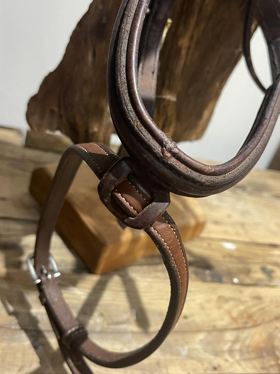 Magnifique, filet forestier en cuir anglais, ayant servi, mais encore un très bel état