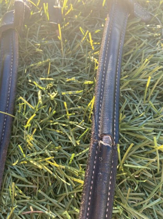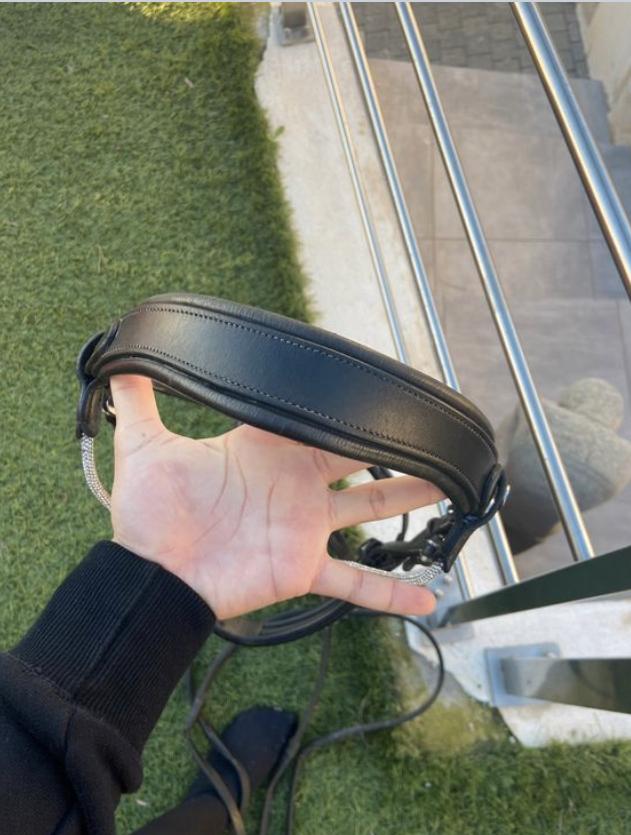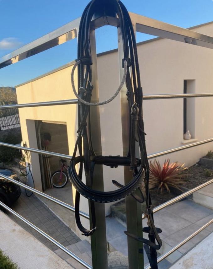 Filet Pénélope, en très bon état cuir noir, taille cob. Attention il y a une petite fente au niveau du cuir de la reine. Cela se voit très peu.