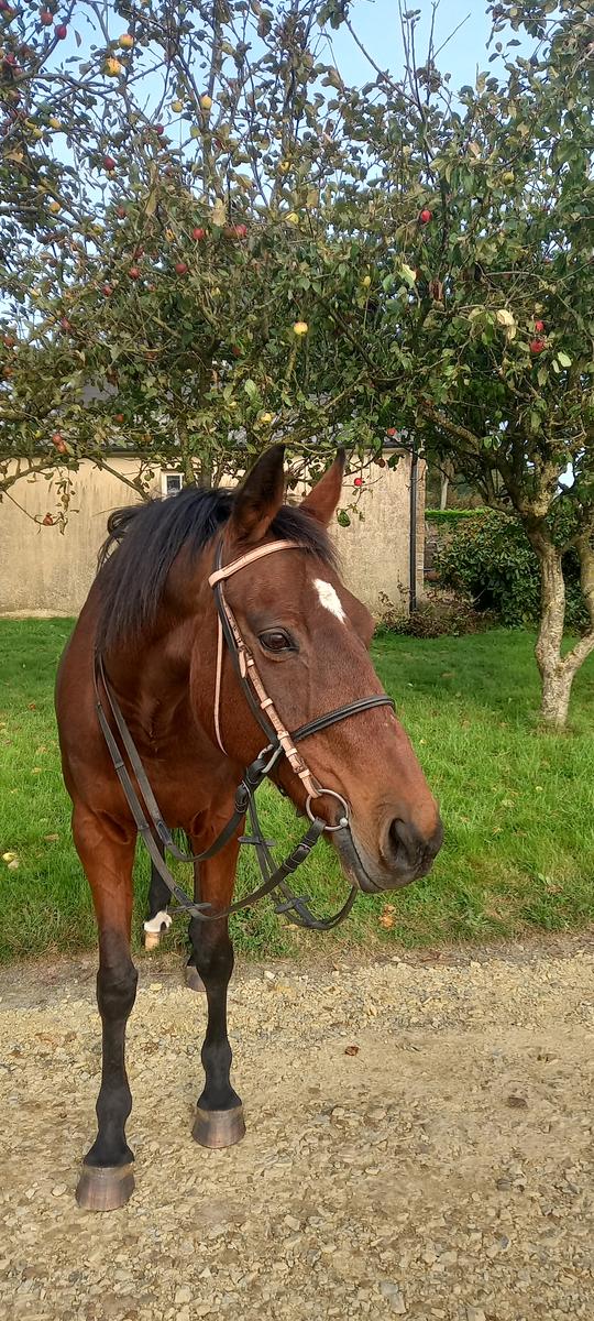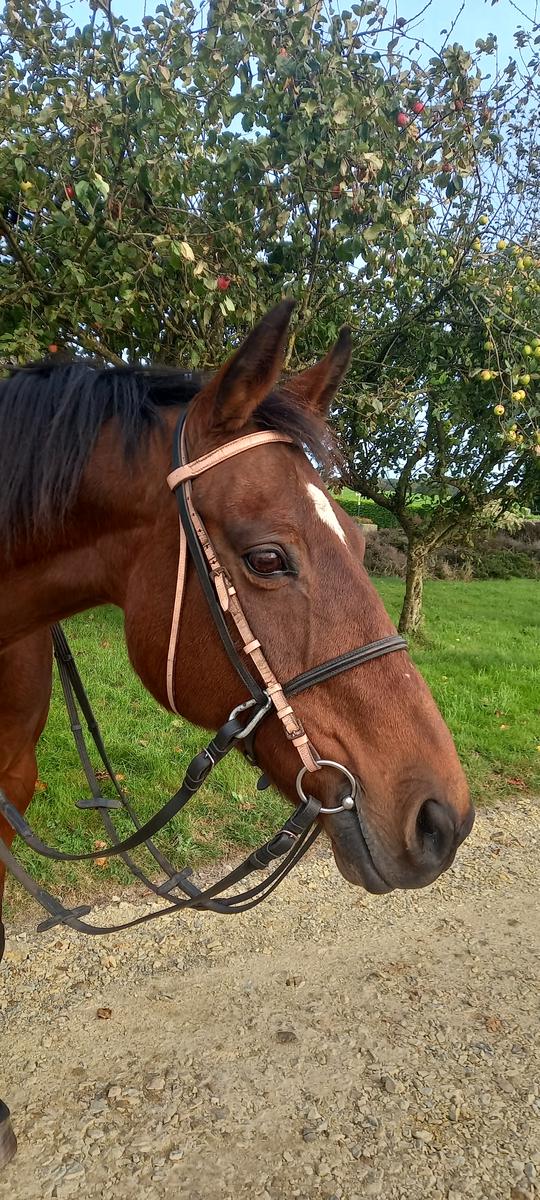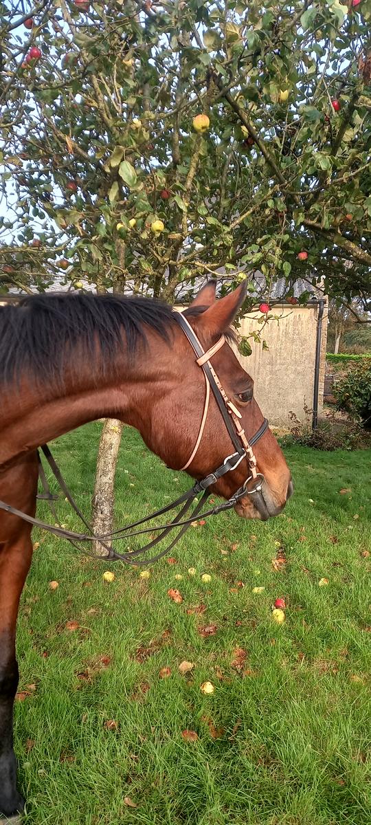 Filet fait maison avec sidepool intégré top pour l apprentissage de son cheval vers le sans mors, cuire noir et marron