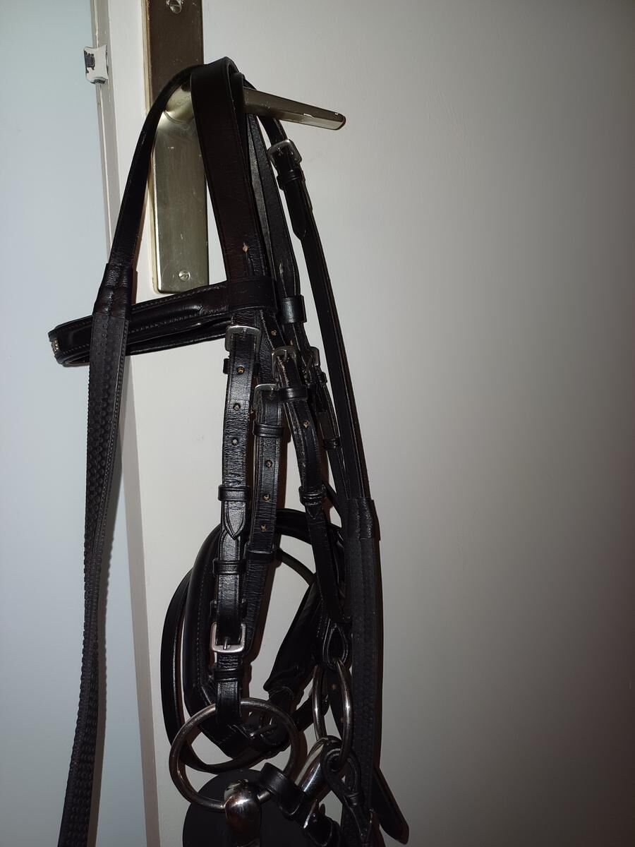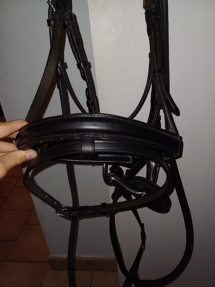 Filet taille poney jamais utilisé car la muserolle est trop petite mors taille et 125mm rondelette décathlon mais le filet est de la marque excelior
