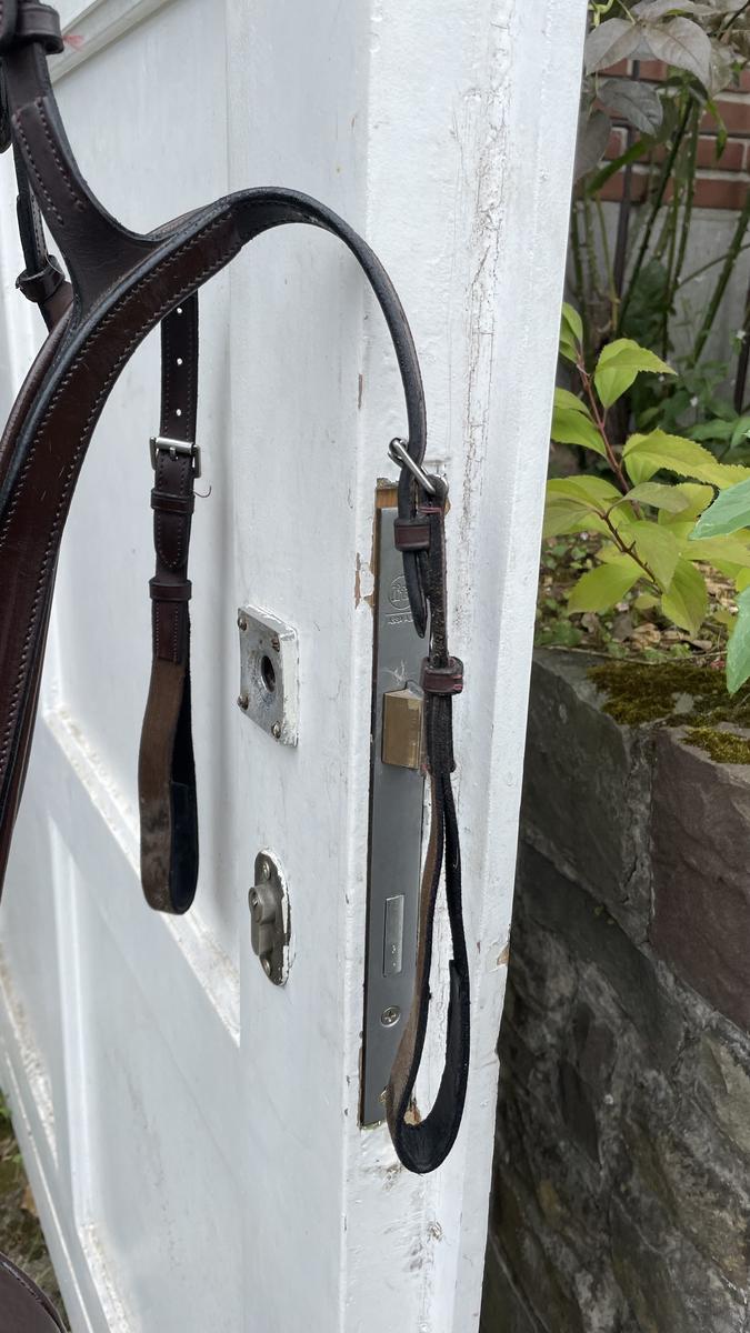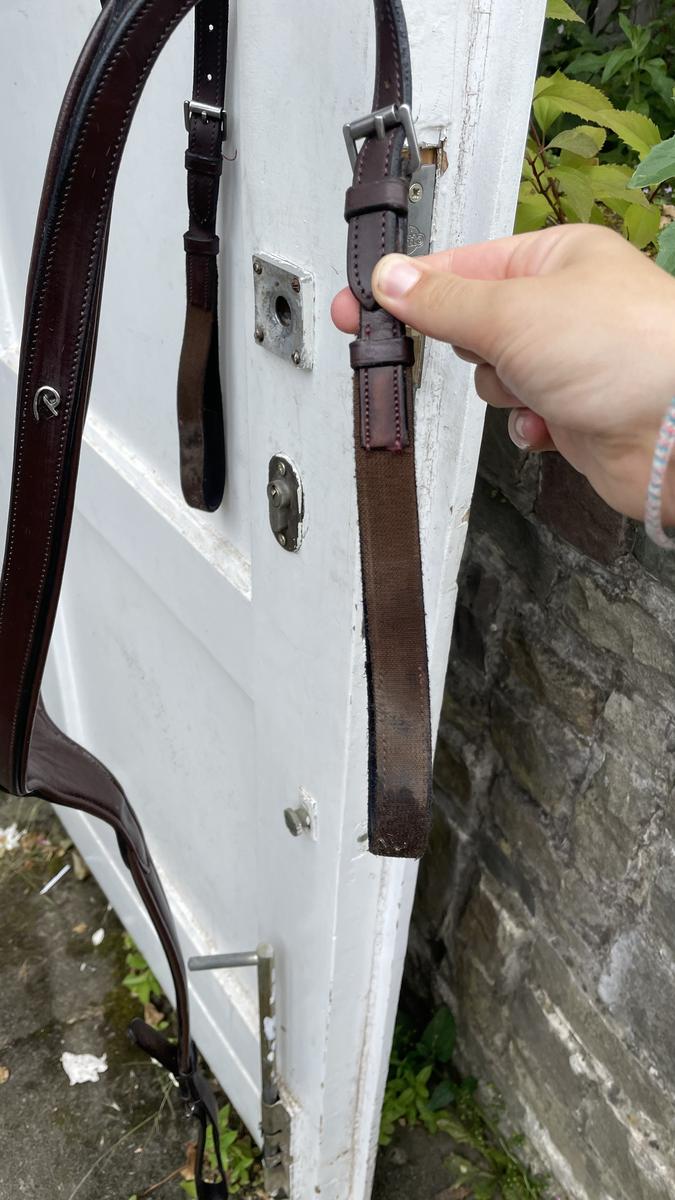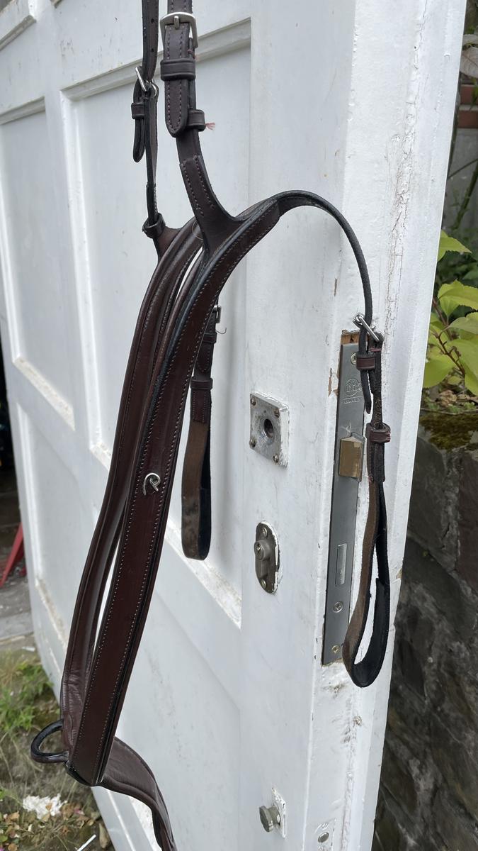 acheté il y a deux ans porté quelques fois en concours il est encore en très bonne état. les lanières qui passent sous les sanglons sont légèrement décolores.