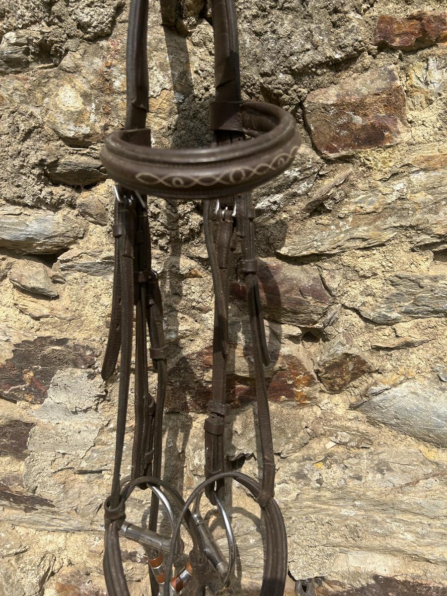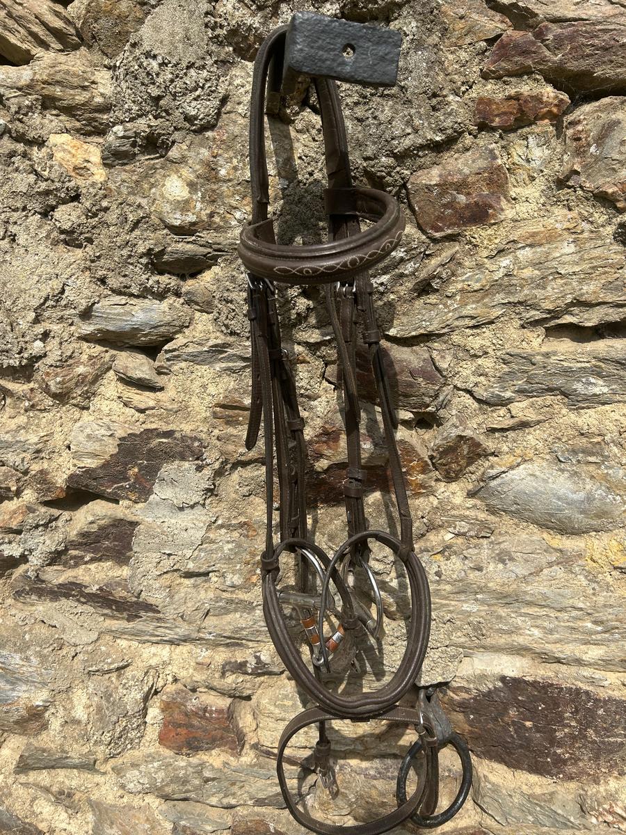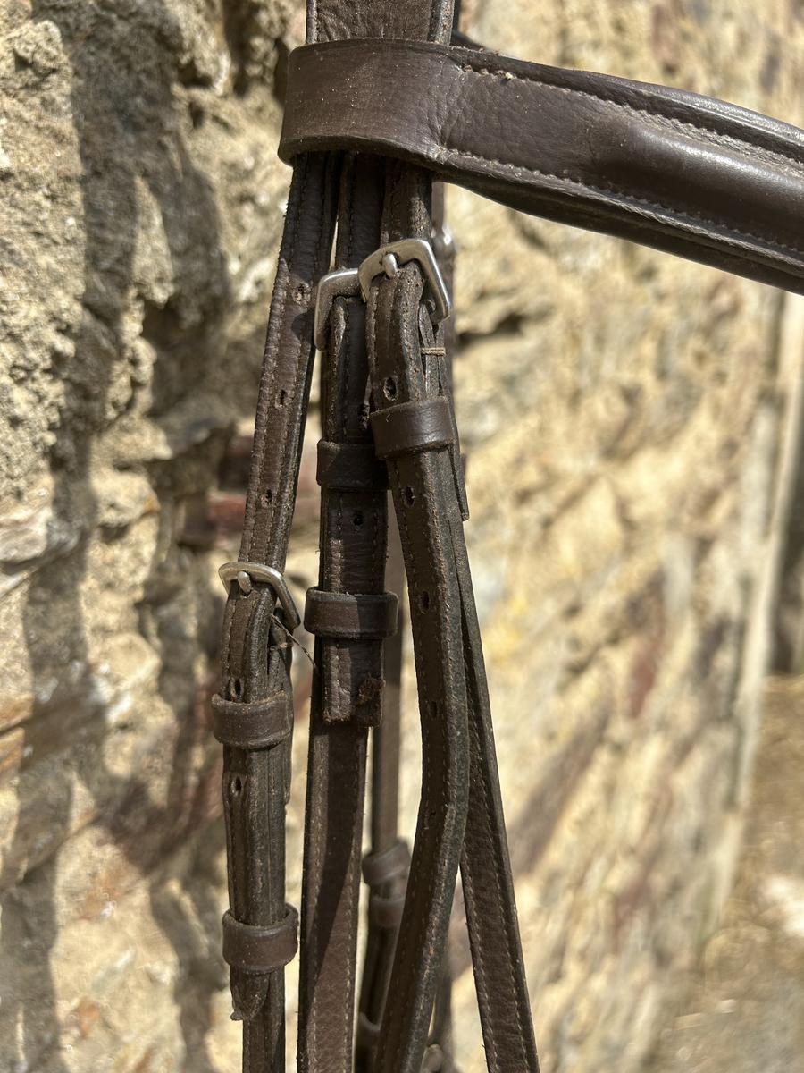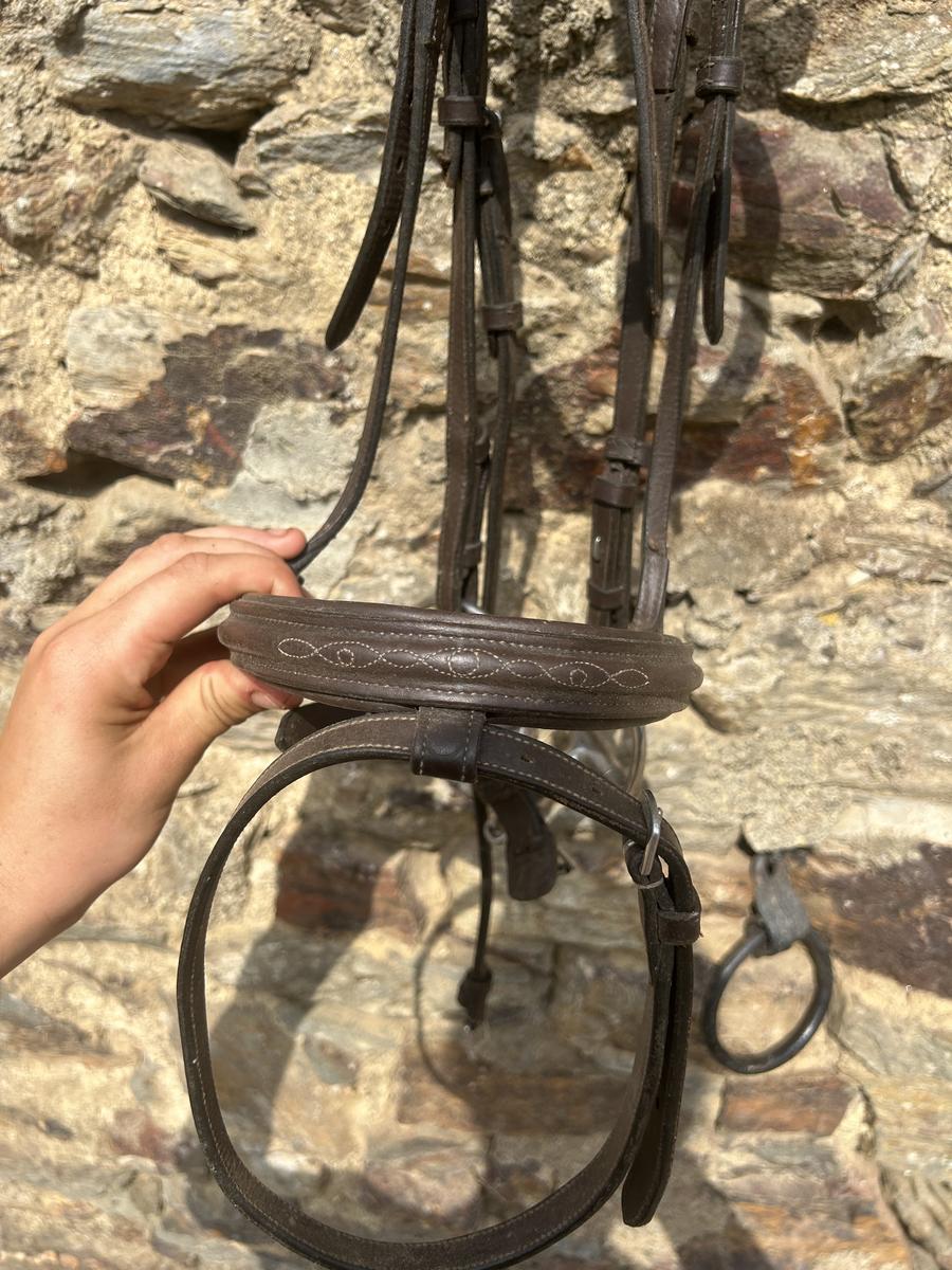 Filet en bon état de la marque fouganza Le cuir est souple. Les montant de mort ont été coupés comme vous pouvez le voir sur les photos d’où le prix.