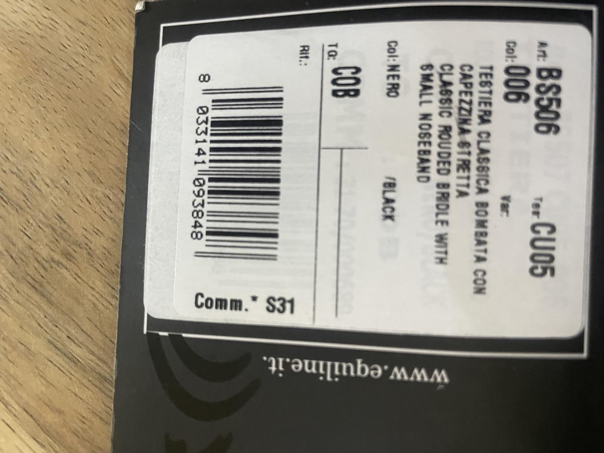 Filet noir en cuir, avec couture blanche, rênes caoutchouc