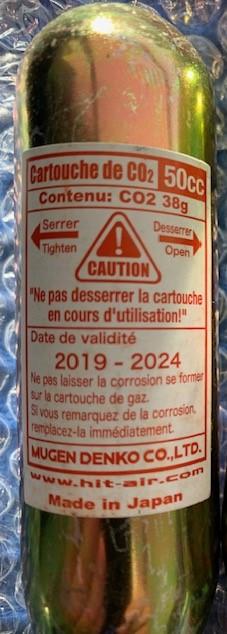 Suite vente gilet Airbag vente cartouche 50cc est facilement identifiable par son étiquette rouge.