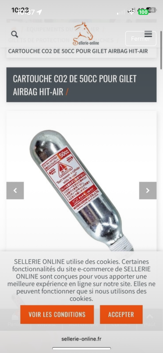 Bonjour je vend un lot de 3 cartouches d’air bag hit air 50cc