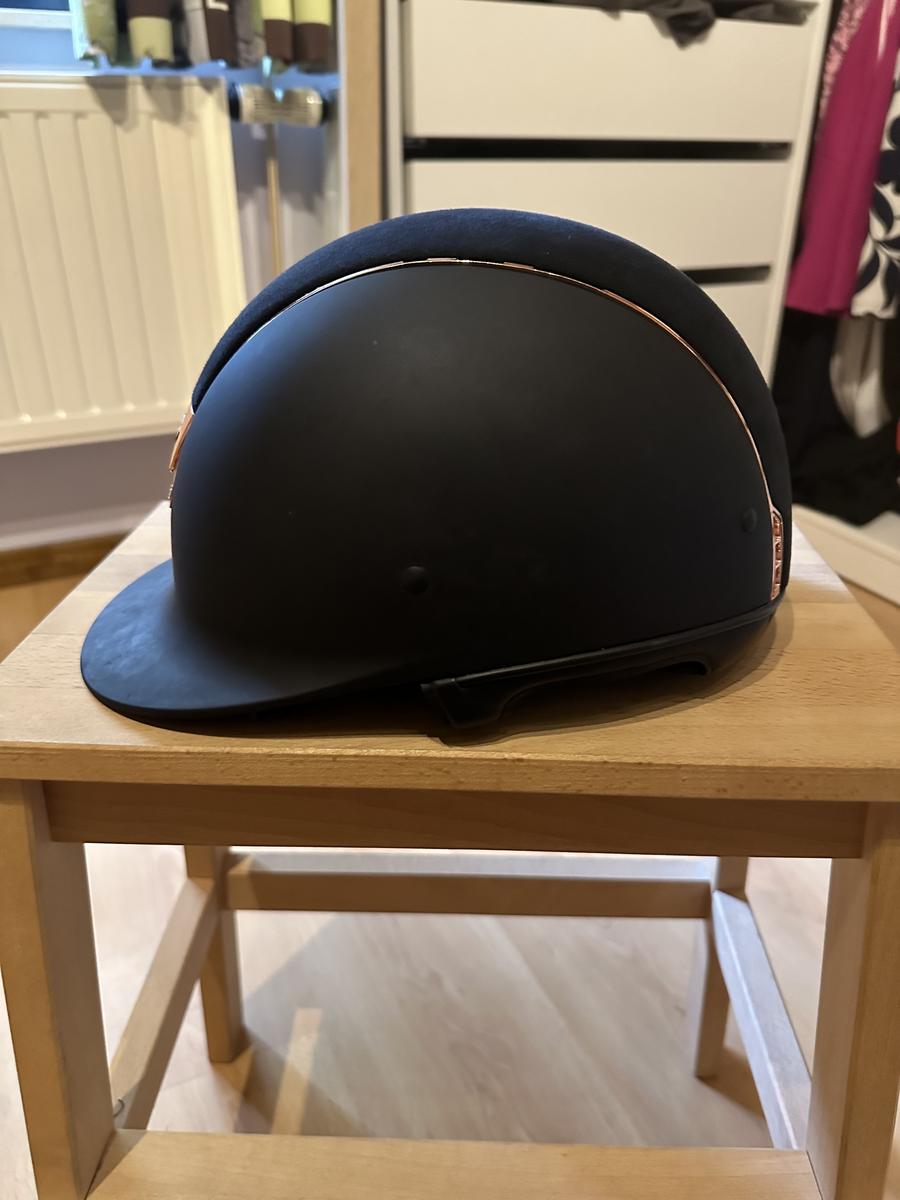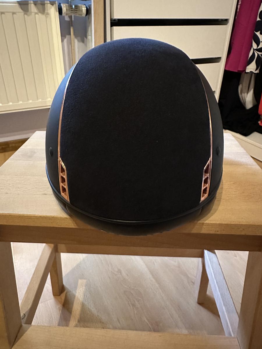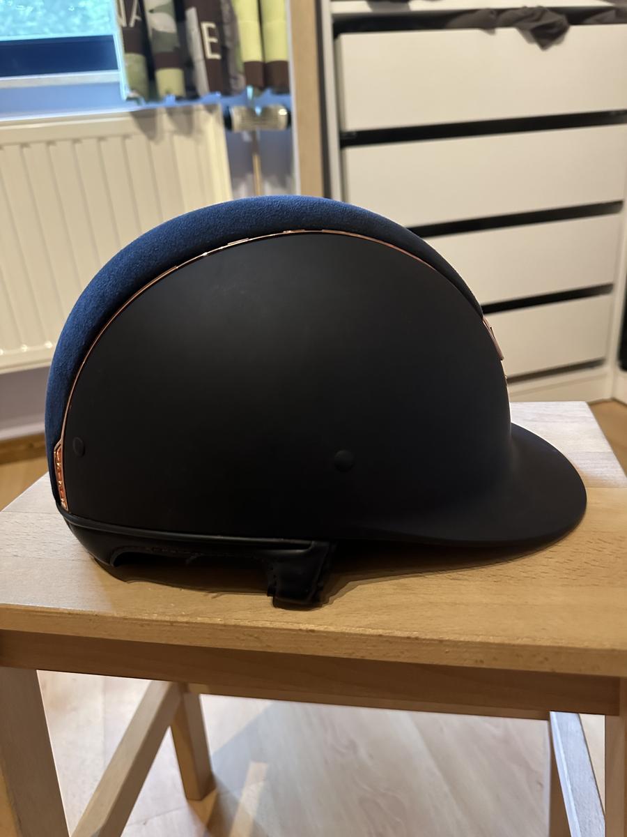 Bleu avec alcantara bleu + liseré et blason chrome rose gold + 5 Swarovski