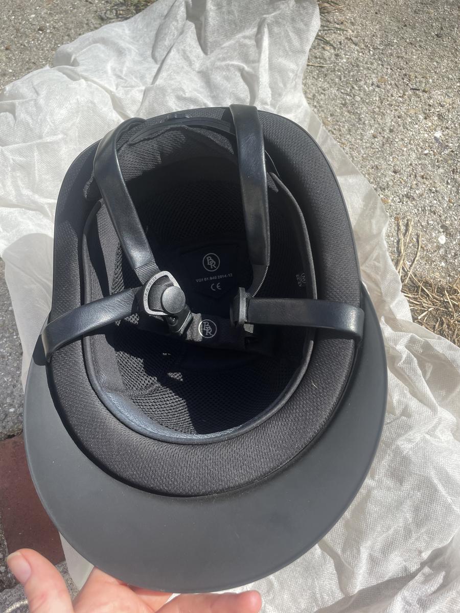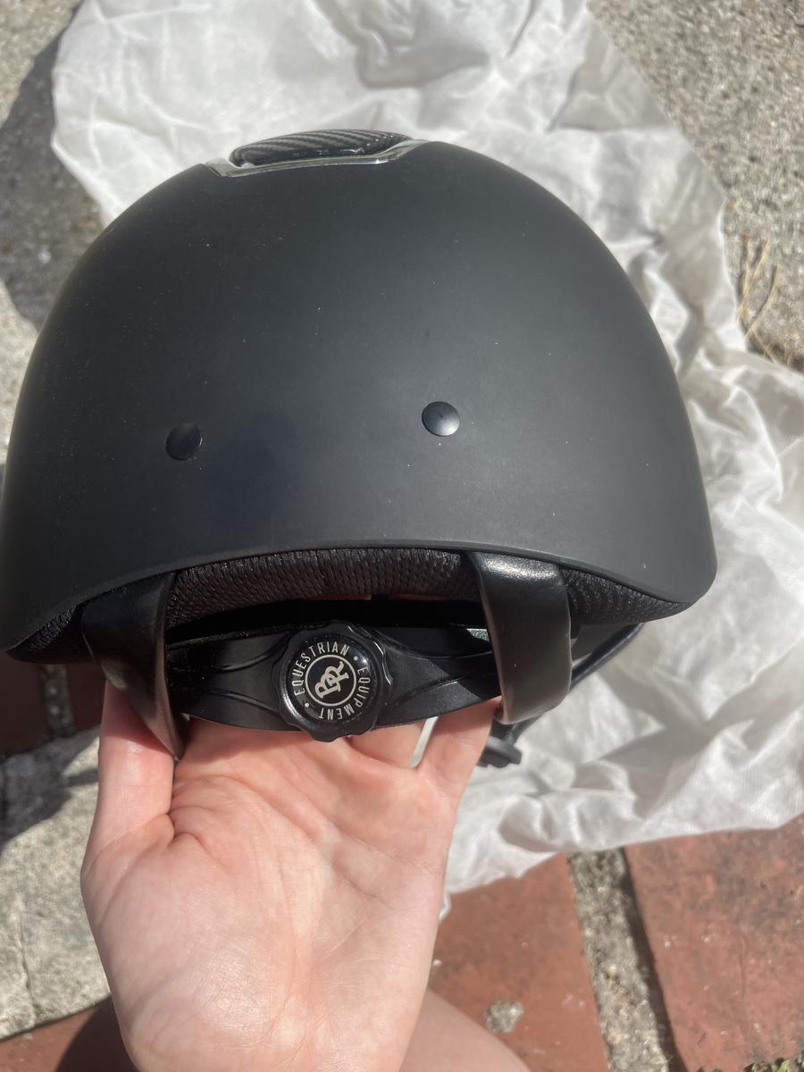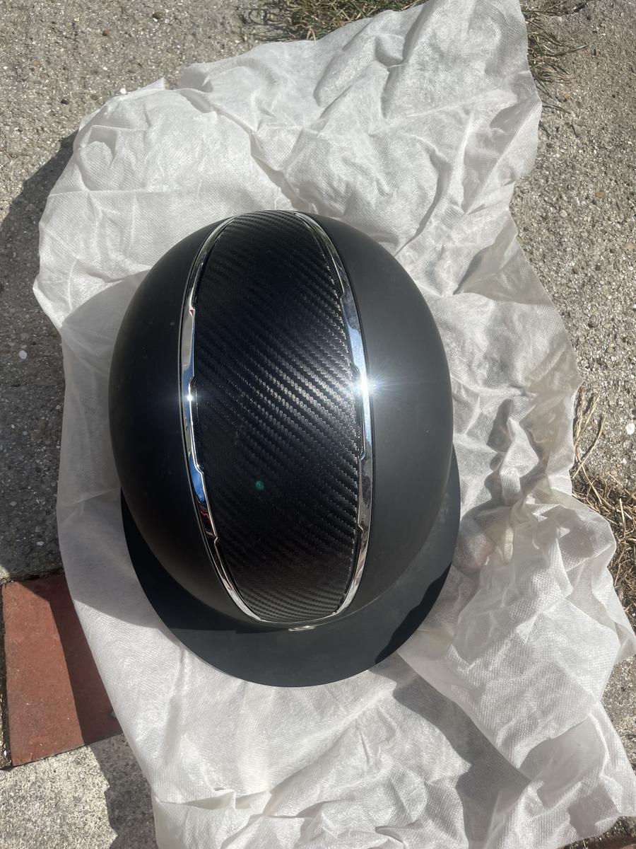 Casque d'Équitation Omega Painted BR Noir, très peu porté : 5 fois maximum, 0 chute, pas reçu de choc car toujours protégé par son emballage et son sac.